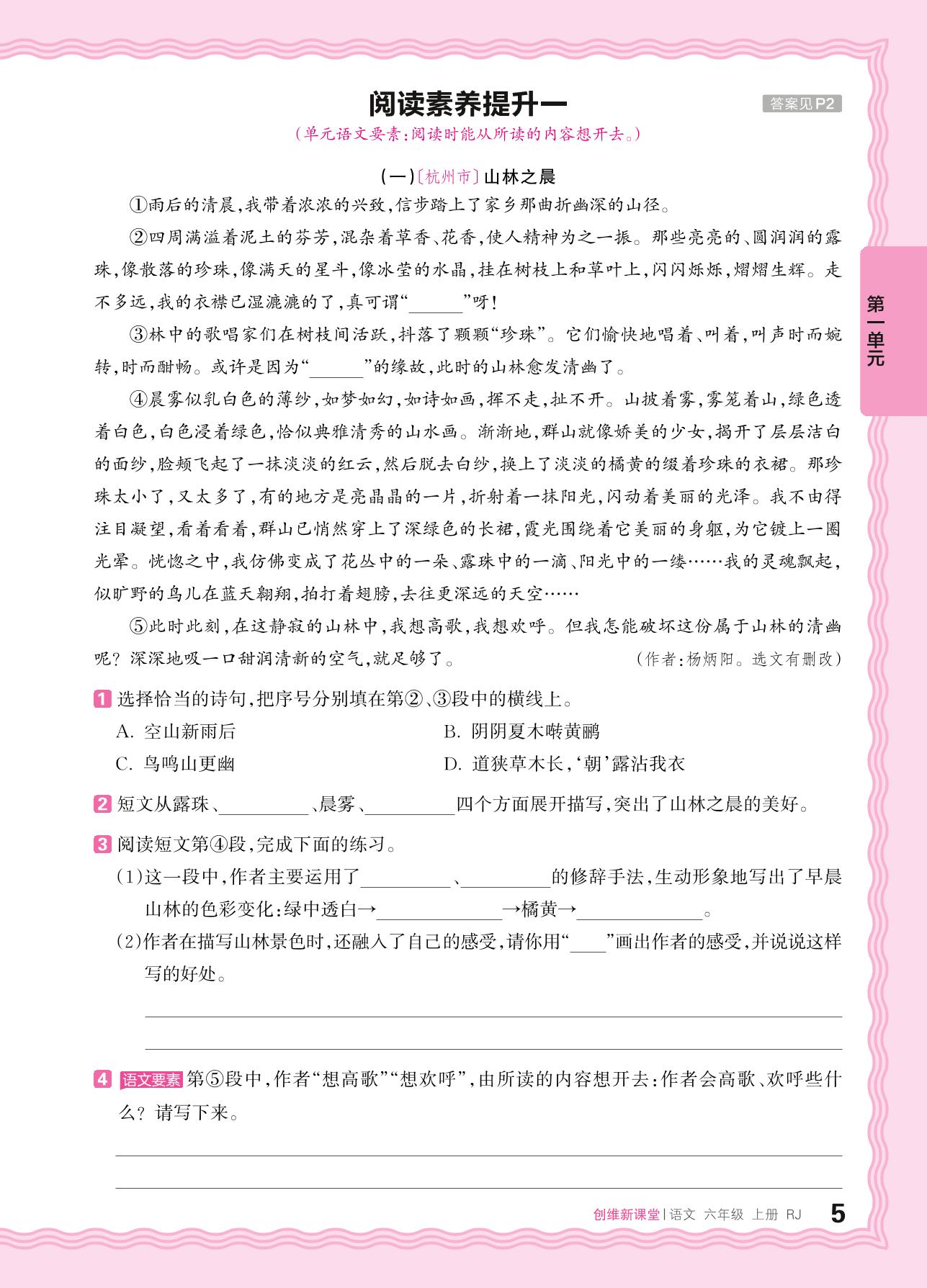 2024秋上册六年级语文人教版 第一单元 触摸自然——阅读素养提升一