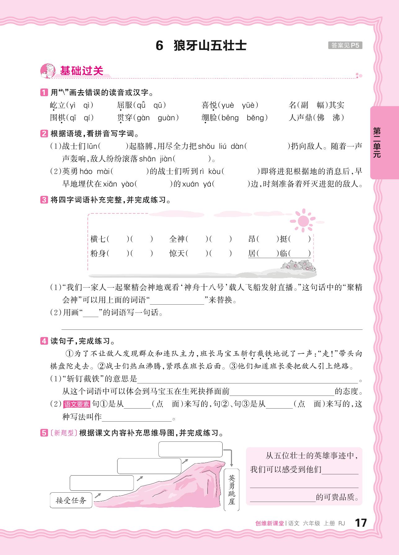 2024秋上册六年级语文人教版 第二单元 革命岁月——6. 狼牙山五壮士