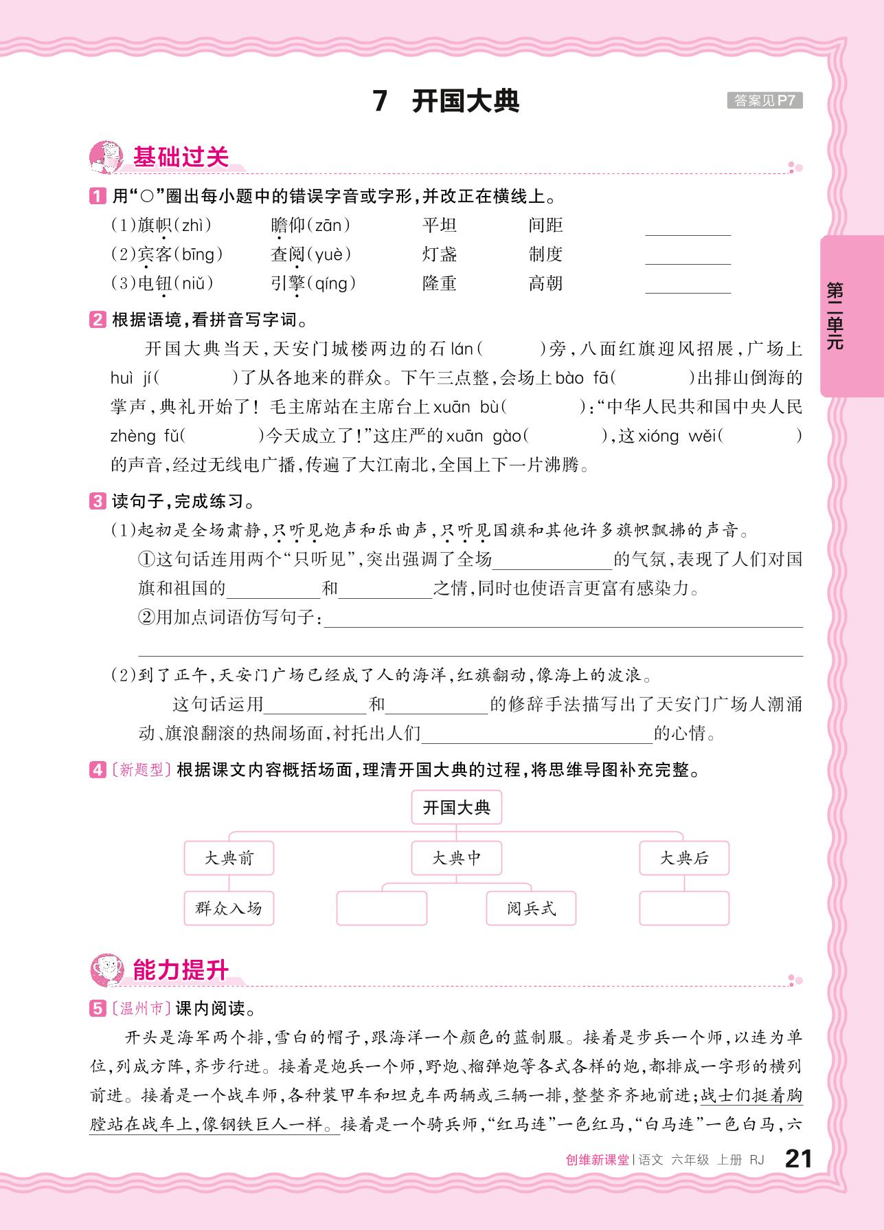 2024秋上册六年级语文人教版 第二单元 革命岁月——7. 开国大典