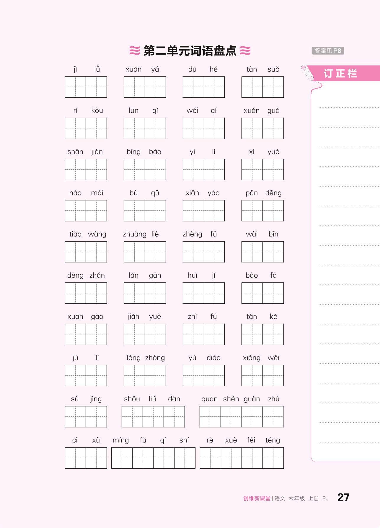 2024秋上册六年级语文人教版 第二单元词语盘点