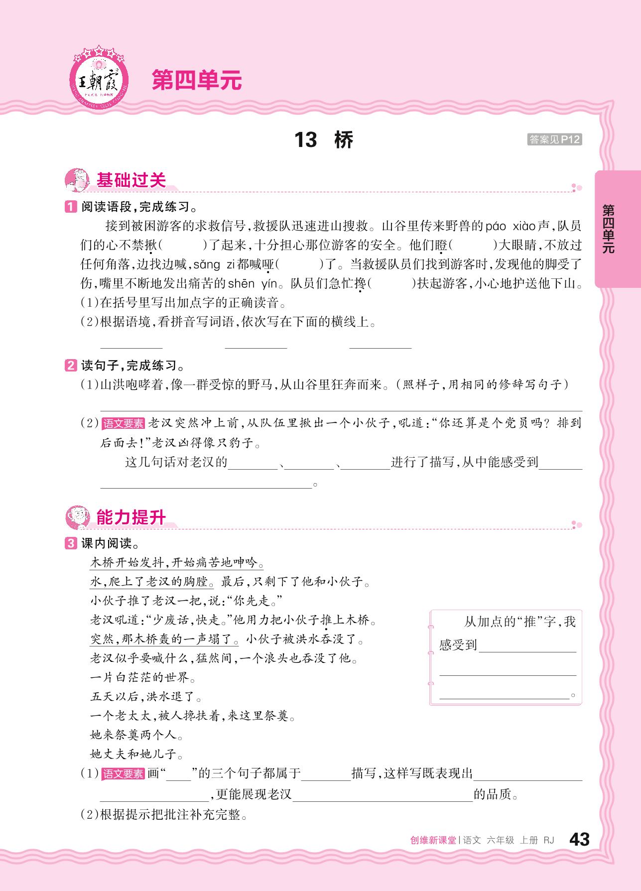 2024秋上册六年级语文人教版 第四单元 小说——13. 桥