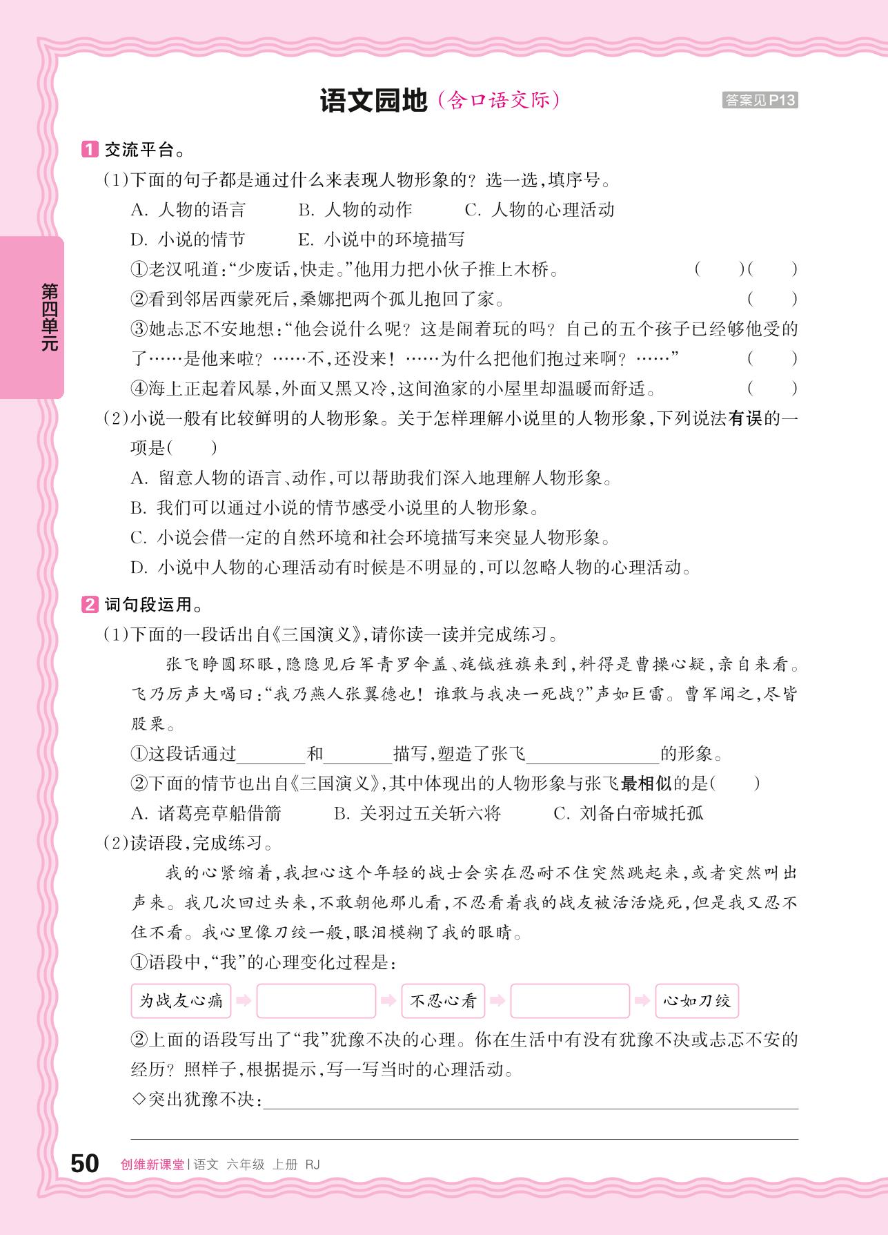 2024秋上册六年级语文人教版 第四单元 小说——语文园地(含口语交际)