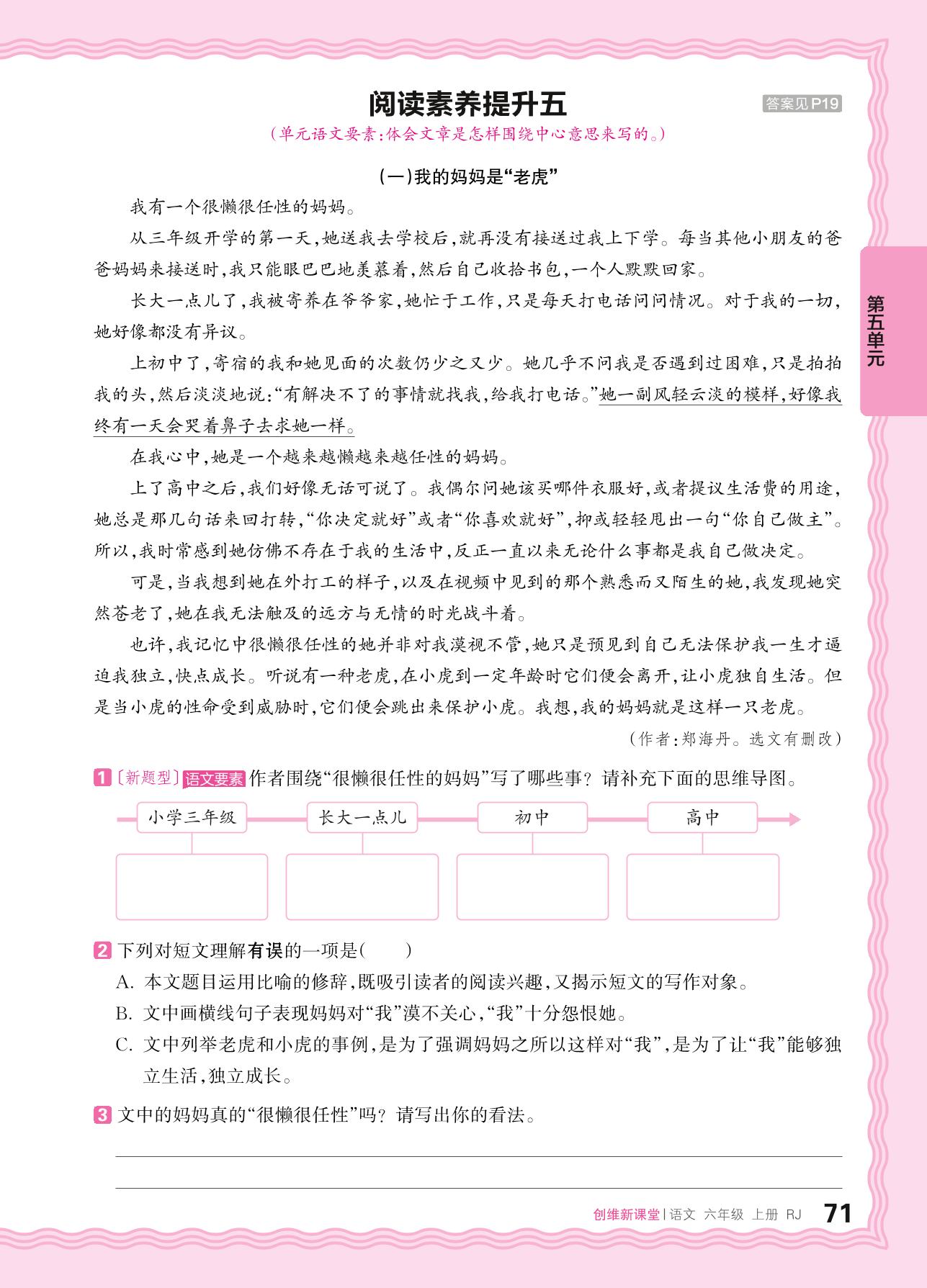 2024秋上册六年级语文人教版 第五单元 围绕中心意思写——阅读素养提升五