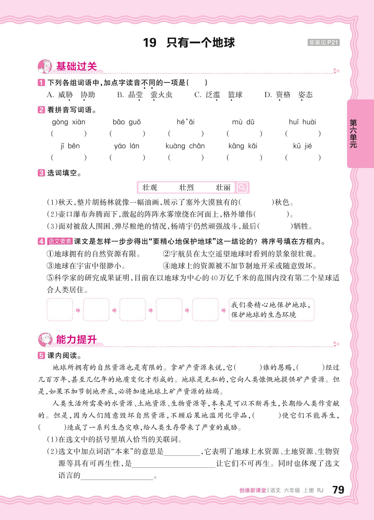 2024秋上册六年级语文人教版 第六单元 保护环境——19. 只有一个地球
