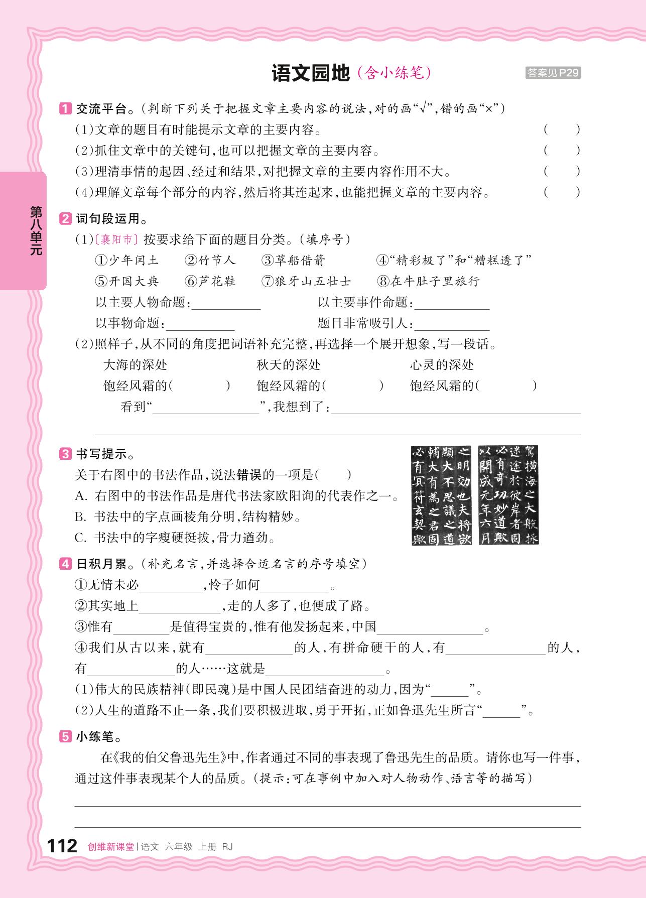 2024秋上册六年级语文人教版 第八单元 走近鲁迅——语文园地(含小练笔)