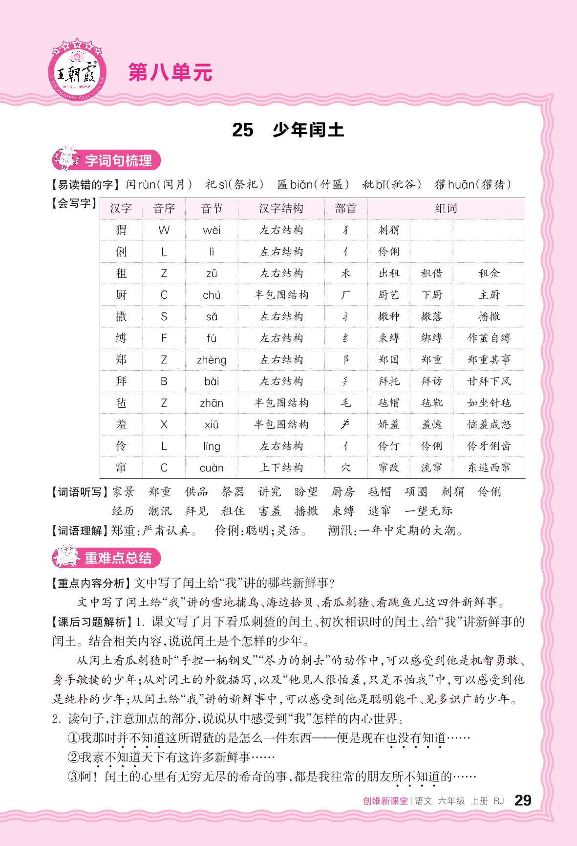 2024秋上册六年级语文人教版 助学手册 第八单元——25. 少年闰土