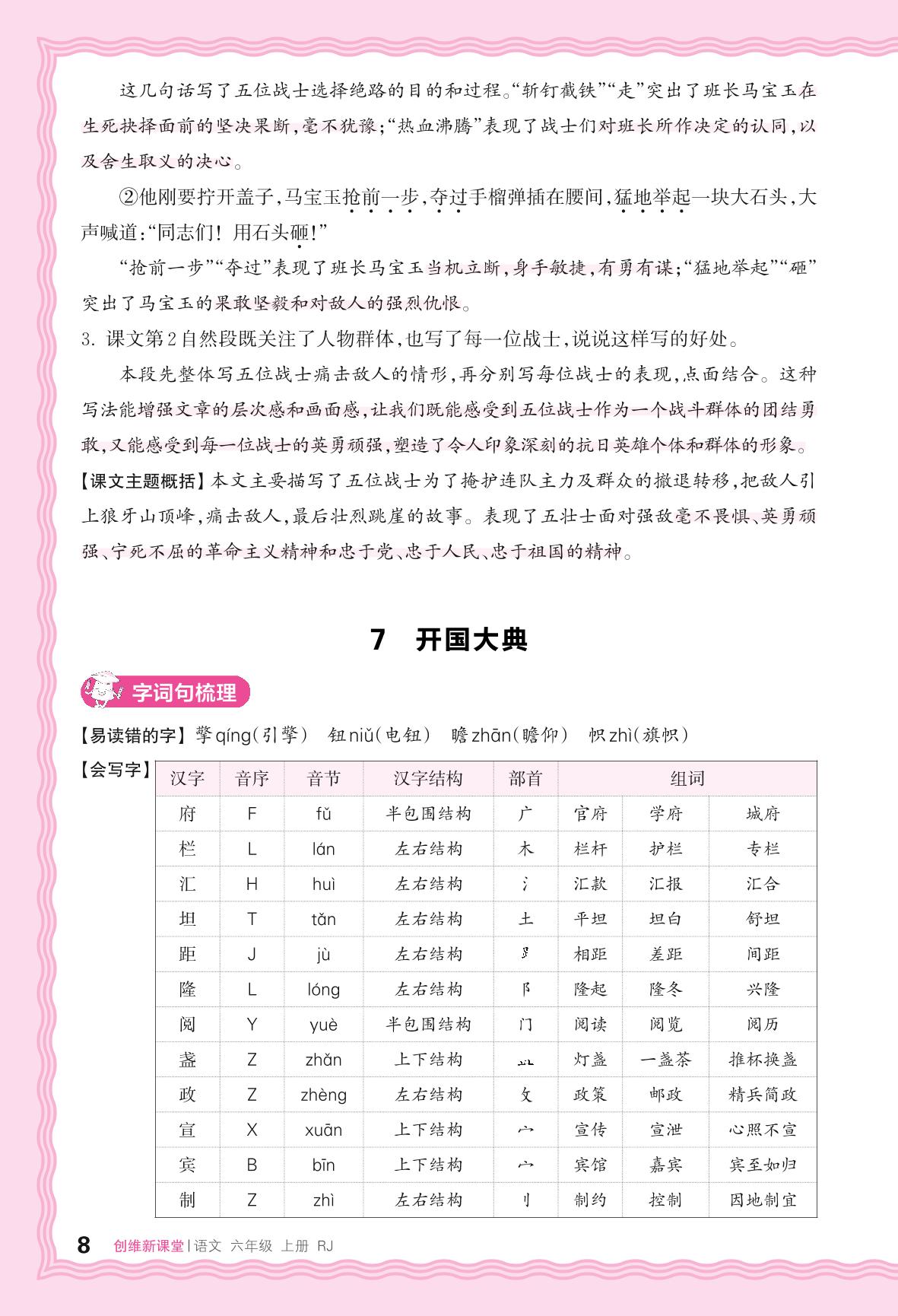 2024秋上册六年级语文人教版 助学手册 第二单元——7. 开国大典