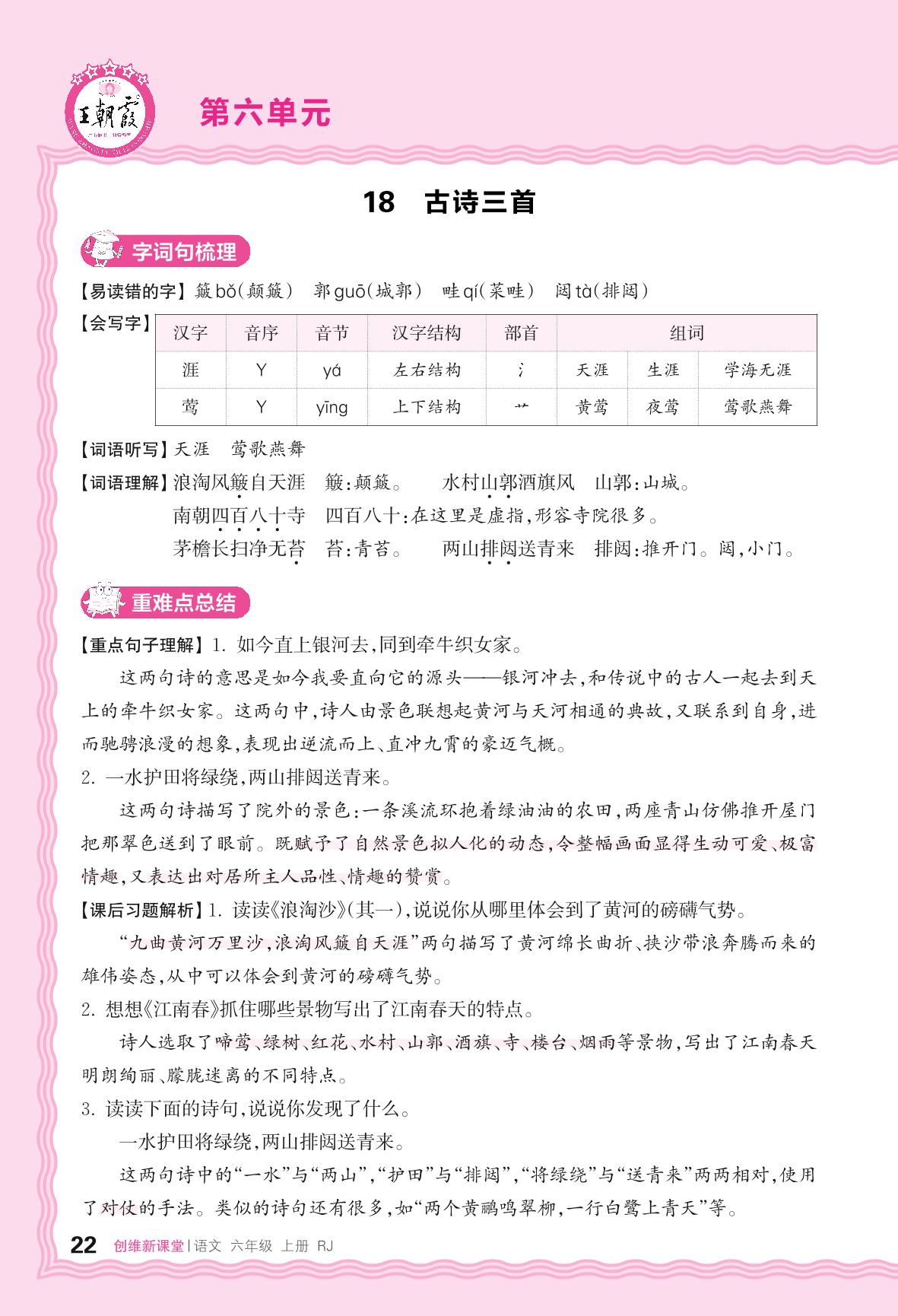 2024秋上册六年级语文人教版 助学手册 第六单元——18. 古诗三首
