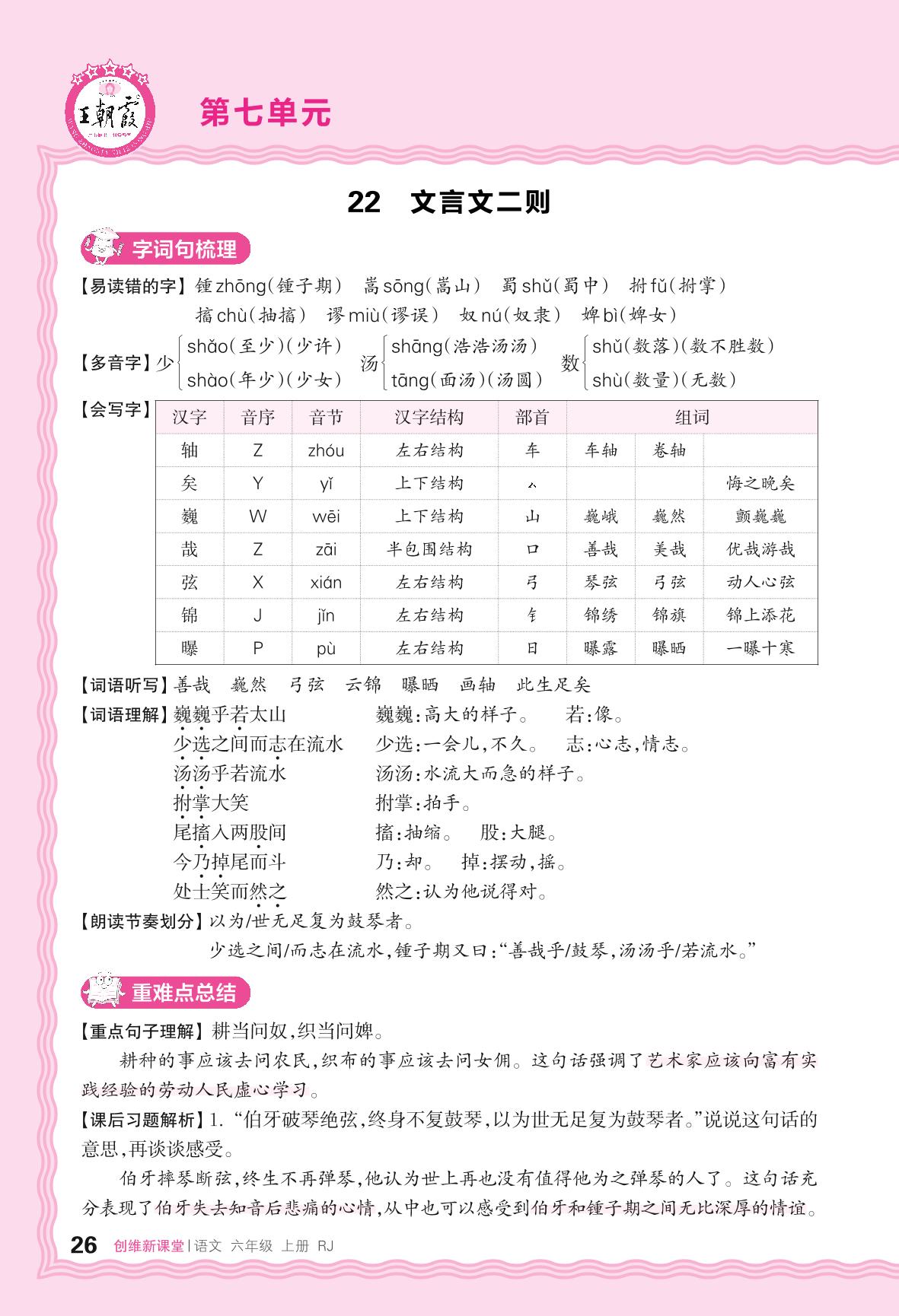 2024秋上册六年级语文人教版 助学手册 第七单元——22. 文言文二则