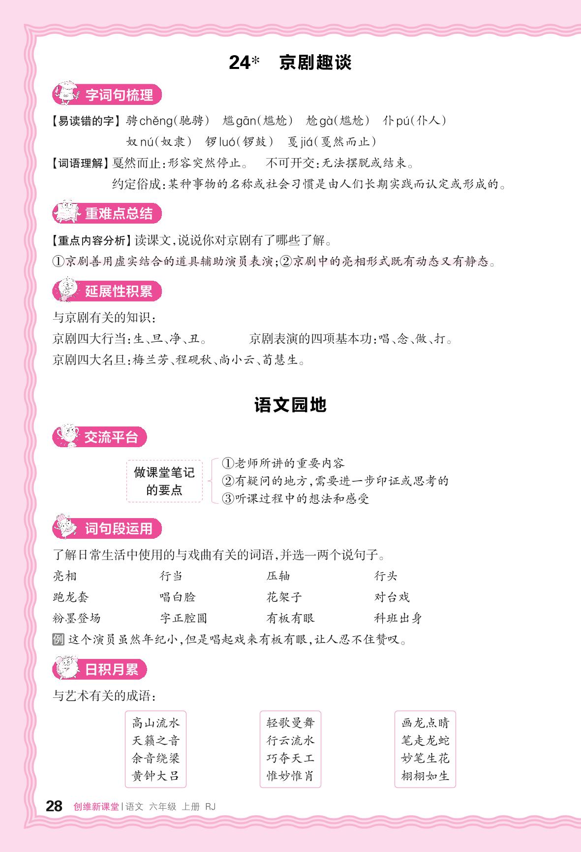 2024秋上册六年级语文人教版 助学手册 第七单元——语文园地