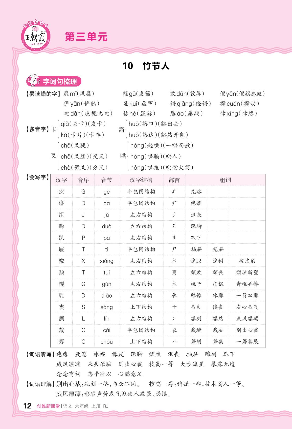 2024秋上册六年级语文人教版 助学手册 第三单元——10. 竹节人