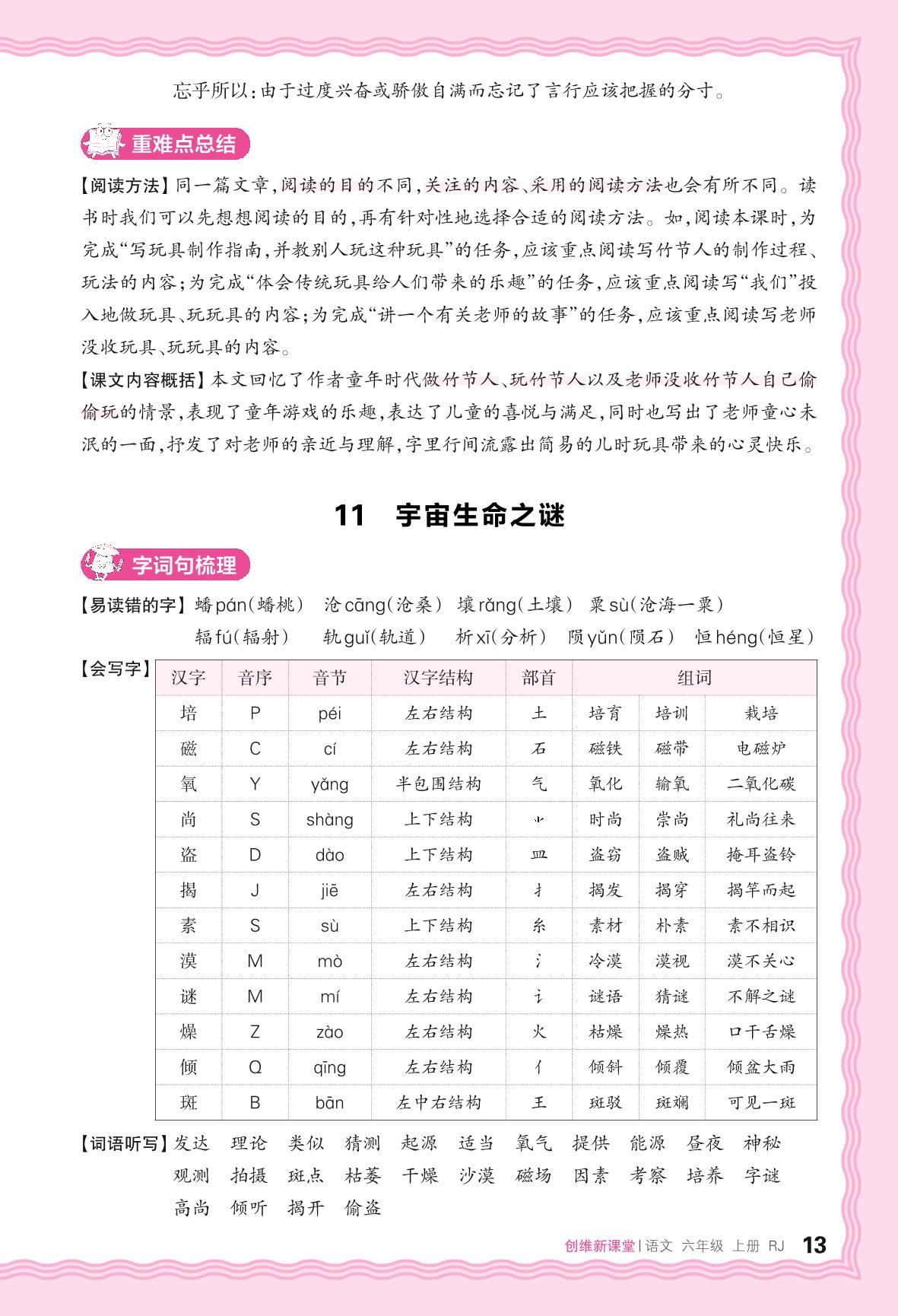 2024秋上册六年级语文人教版 助学手册 第三单元——11. 宇宙生命之谜