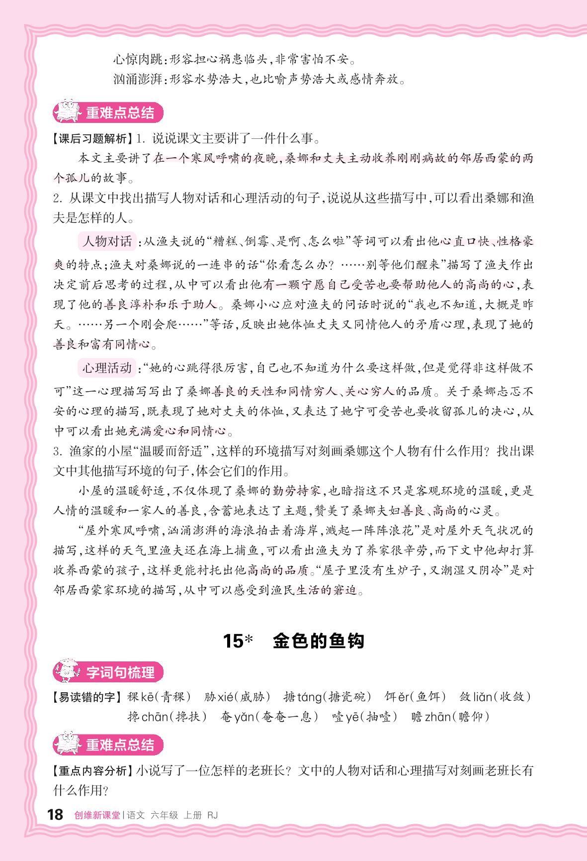 2024秋上册六年级语文人教版 助学手册 第四单元——15. 金色的鱼钩