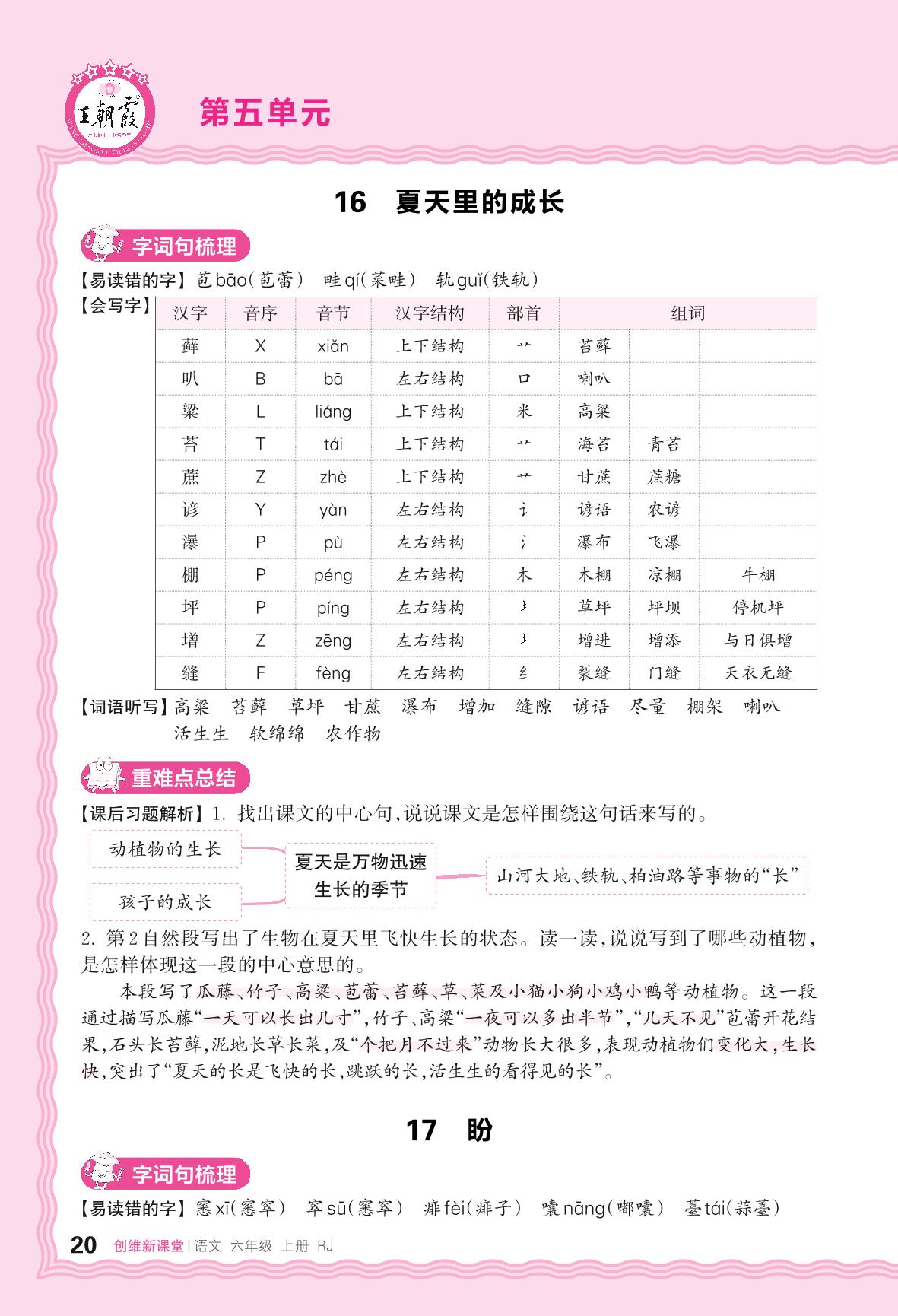 2024秋上册六年级语文人教版 助学手册 第五单元——16. 夏天里的成长