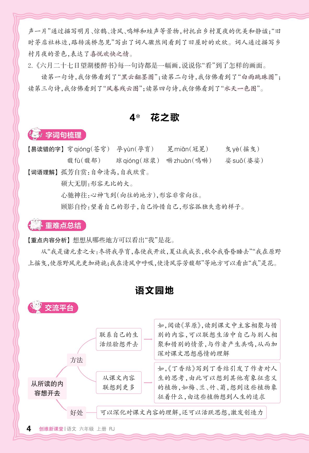 2024秋上册六年级语文人教版 助学手册 第一单元——4. 花之歌