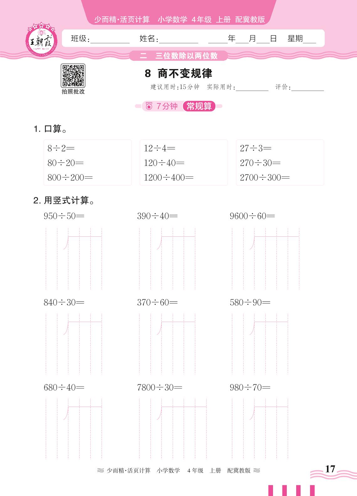 2024秋上册四年级数学冀教版 第二单元 三位数除以两位数——8. 商不变规律_R240819100213486
