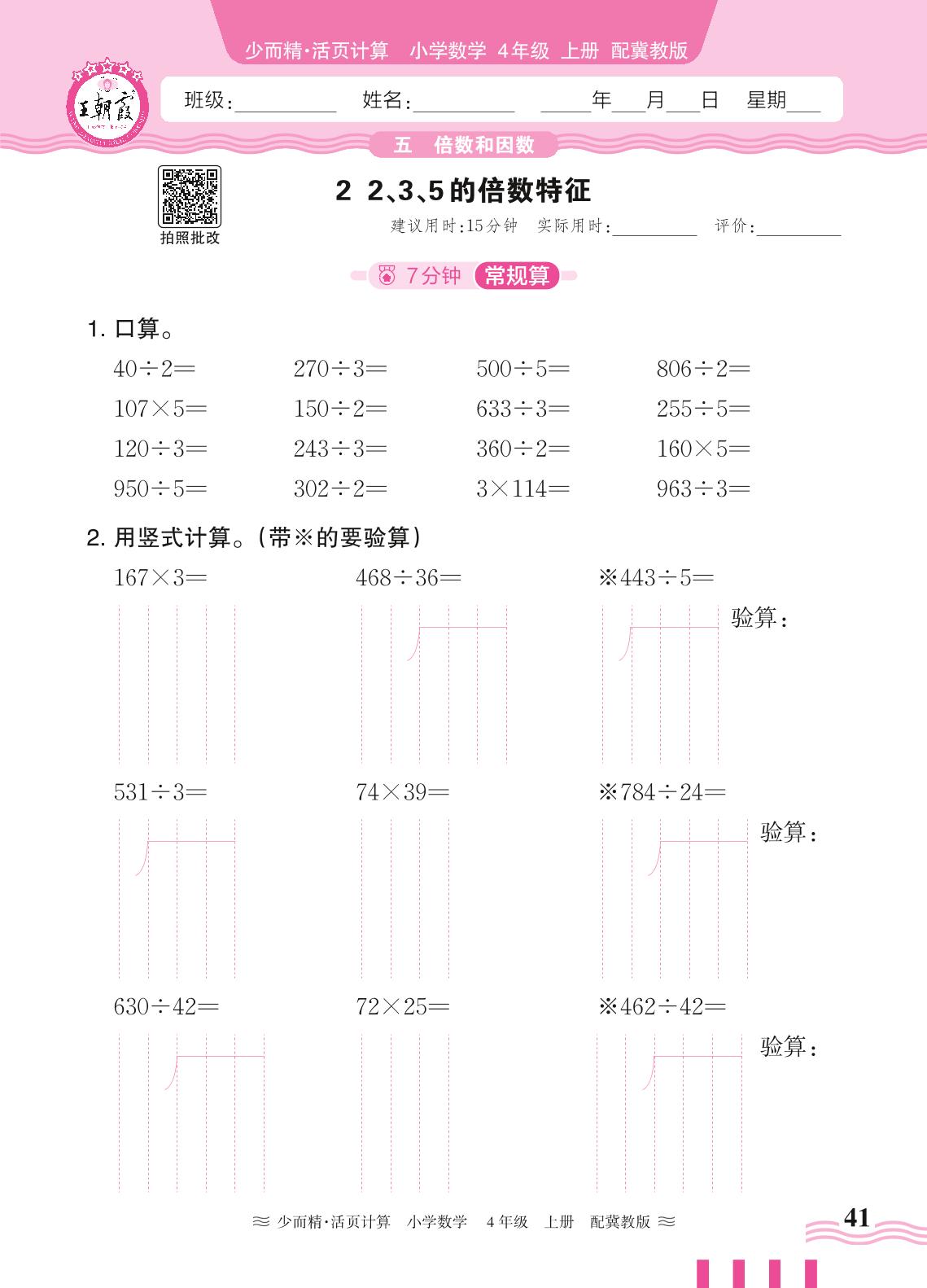 2024秋上册四年级数学冀教版 第五单元 倍数和因数——2. 2、3、5的倍数特征