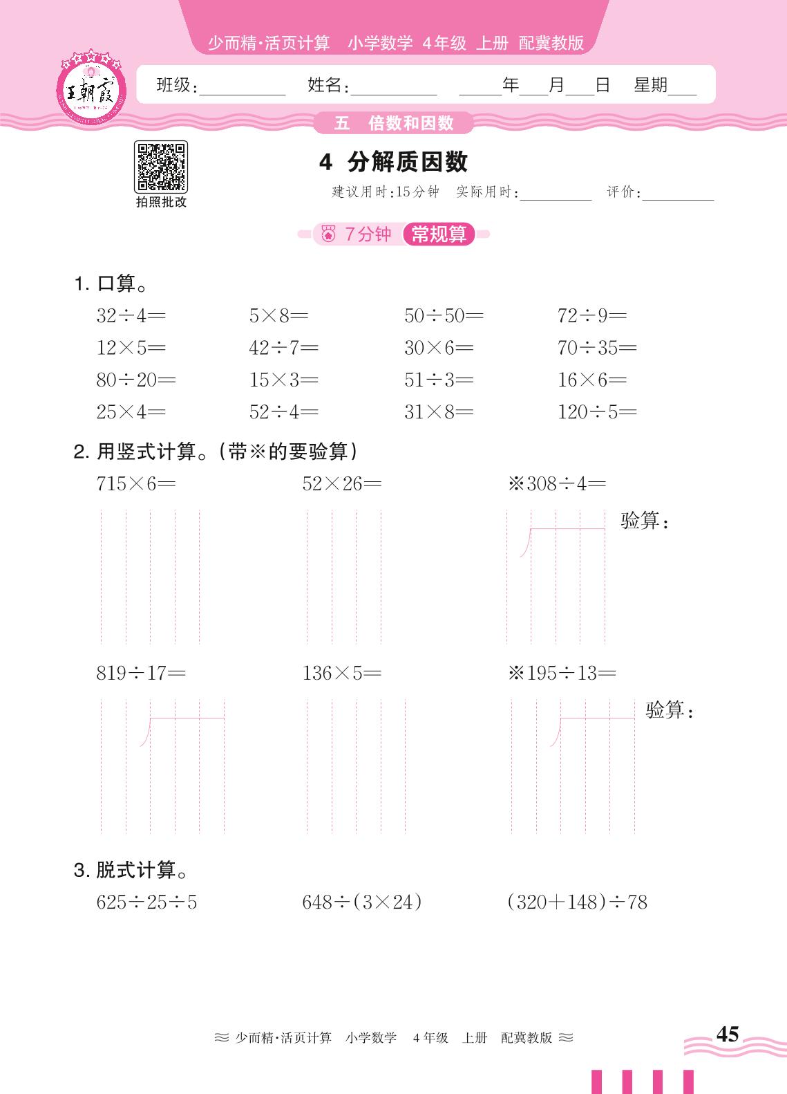 2024秋上册四年级数学冀教版 第五单元 倍数和因数——4. 分解质因数
