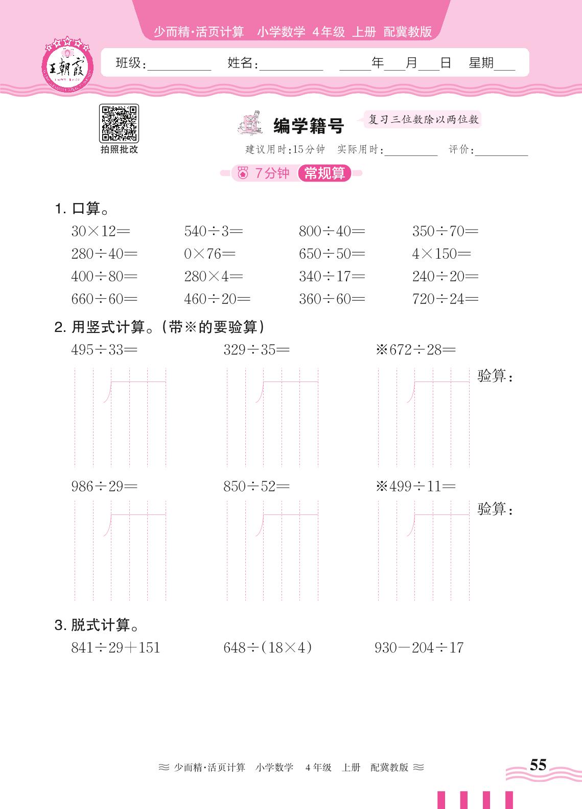 2024秋上册四年级数学冀教版 第六单元 认识更大的数——编学籍号