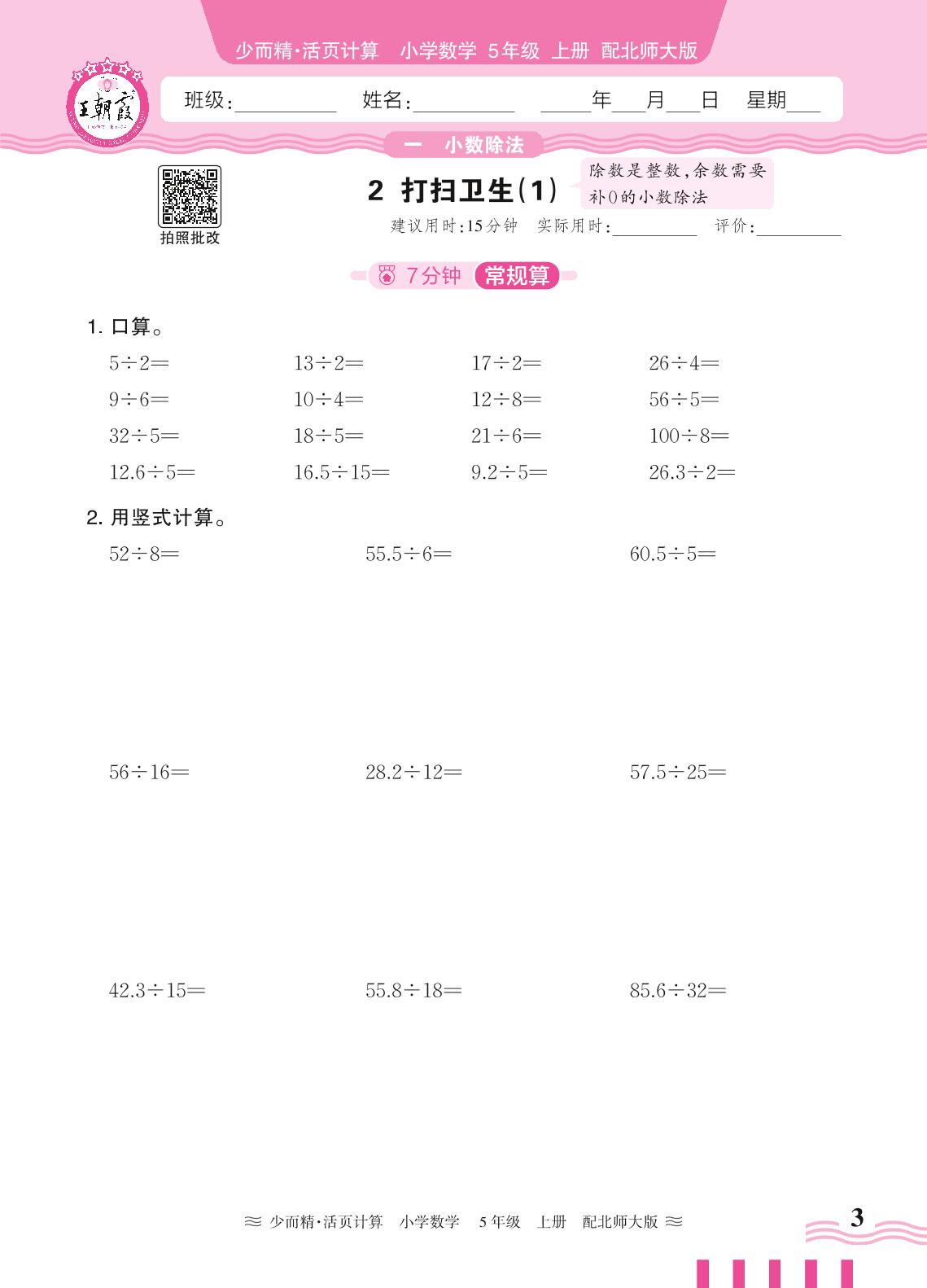 2024秋上册五年级数学北师版 第一单元 小数除法——2. 打扫卫生(1)_R240819100432377