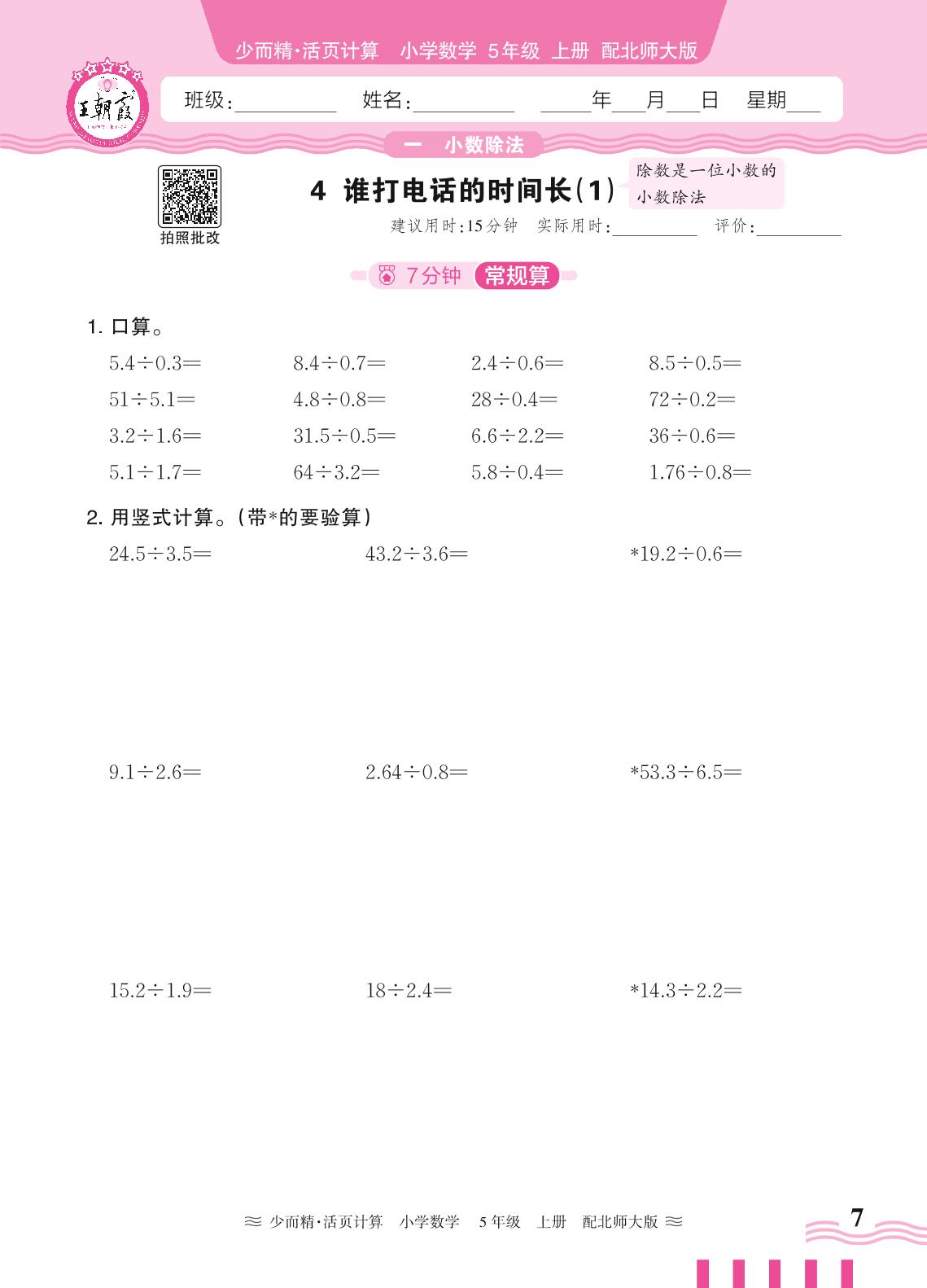 2024秋上册五年级数学北师版 第一单元 小数除法——4. 谁打电话的时间长(1)_R240819100433433