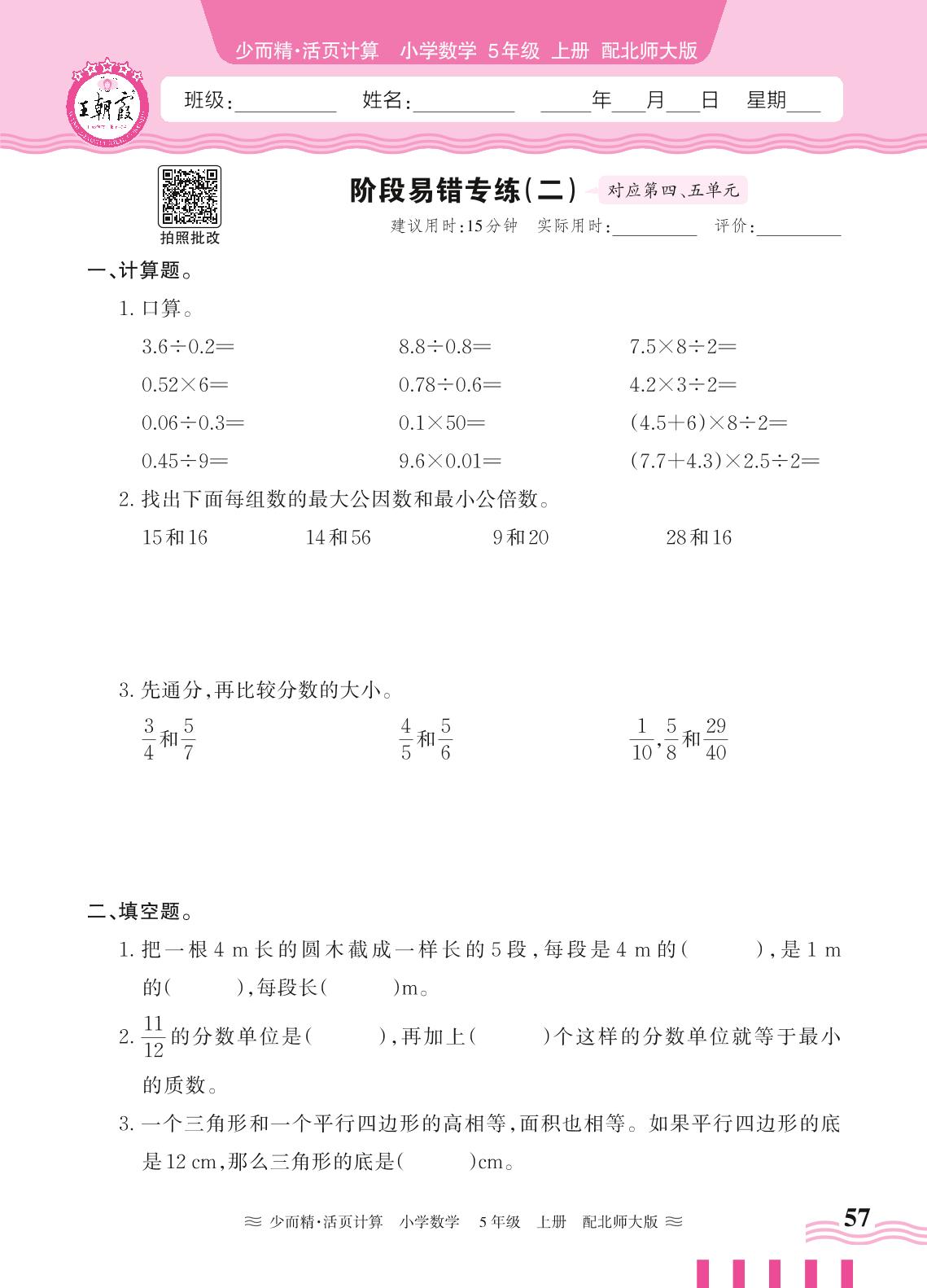 2024秋上册五年级数学北师版 第四、五单元 阶段易错专练
