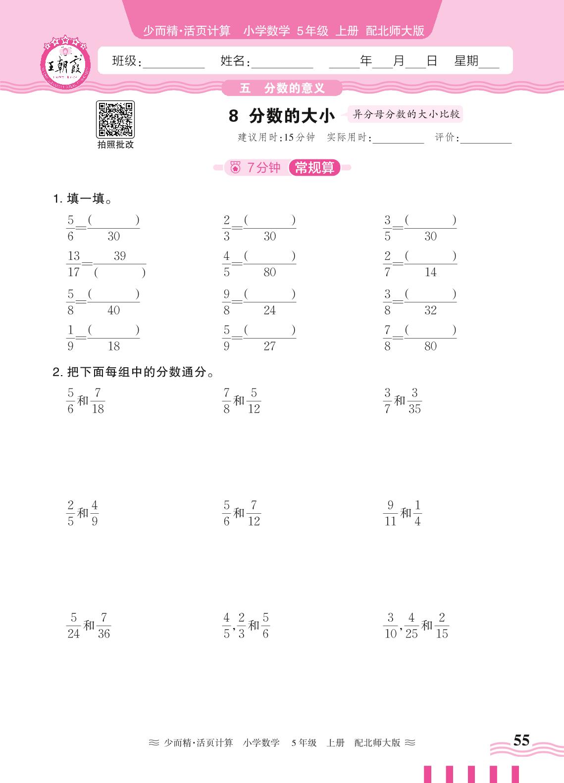 2024秋上册五年级数学北师版 第五单元 分数的意义——8. 分数的大小