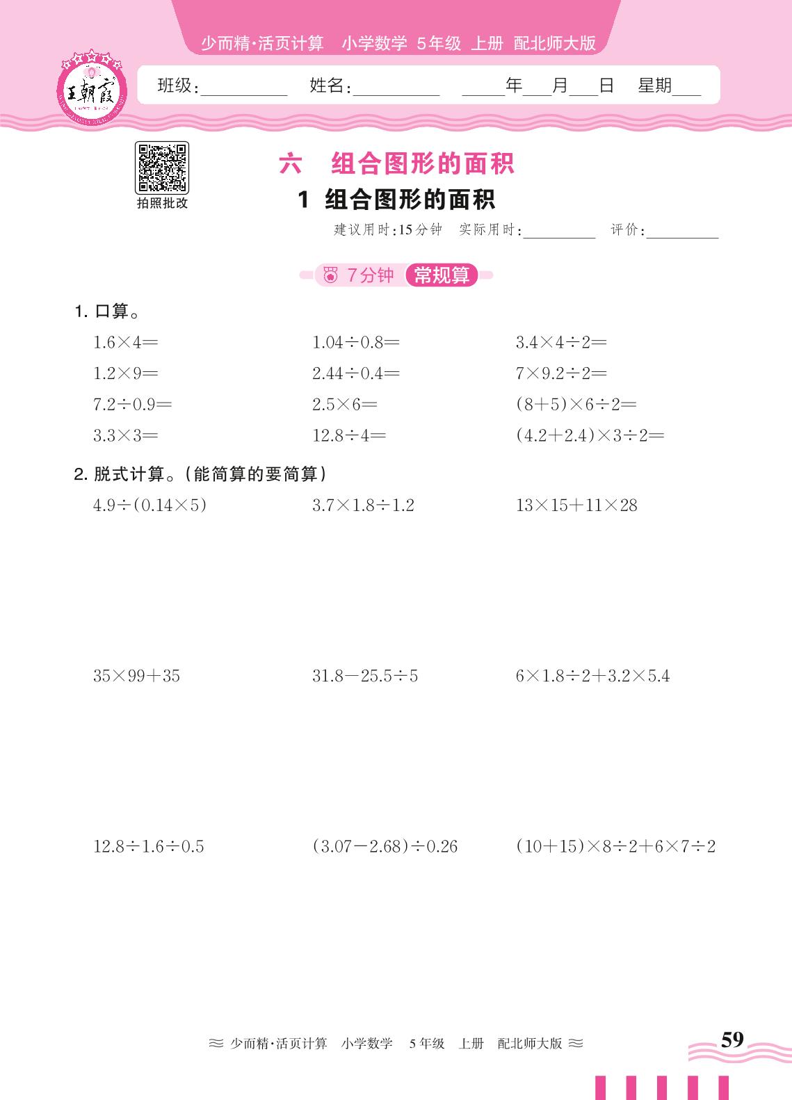 2024秋上册五年级数学北师版 第六单元 组合图形的面积——1. 组合图形的面积_R240819100443062