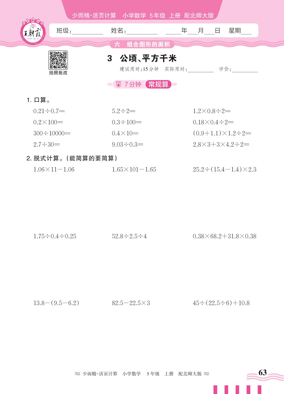 2024秋上册五年级数学北师版 第六单元 组合图形的面积——3. 公顷、平方千米_R240819100443225