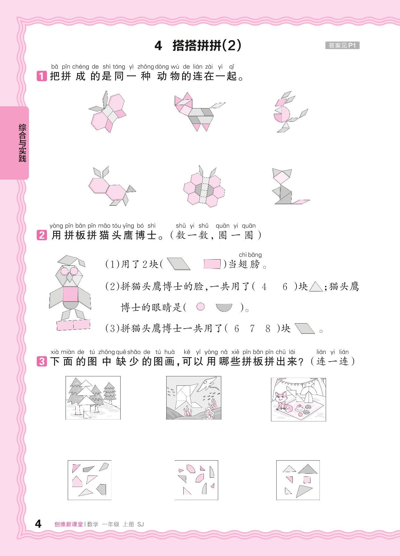 2024秋上册一年级数学苏教版 数学游戏分享——4. 搭搭拼拼(2)