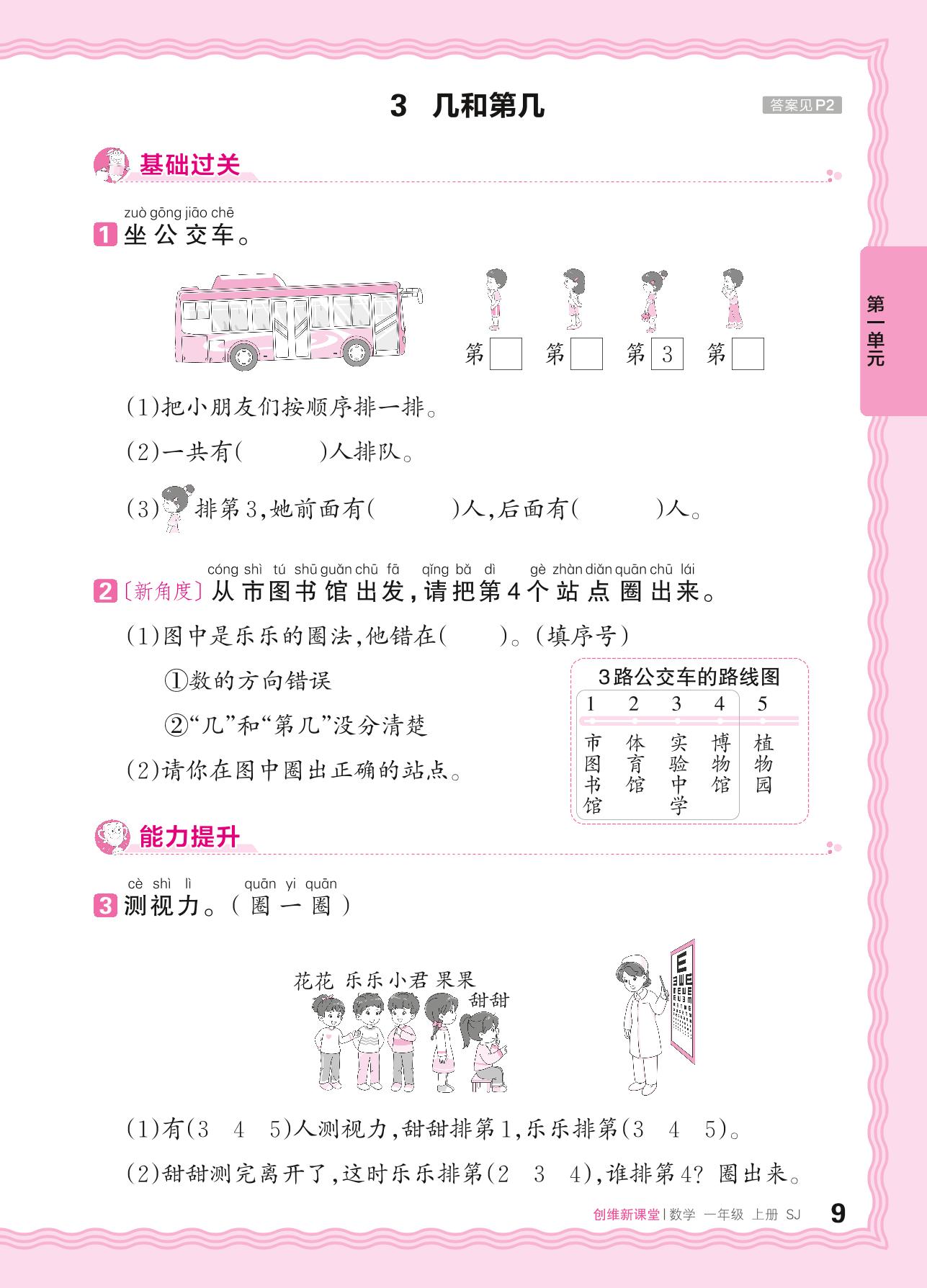 2024秋上册一年级数学苏教版 第一单元 0~5的认识和加减法——3. 几和第几