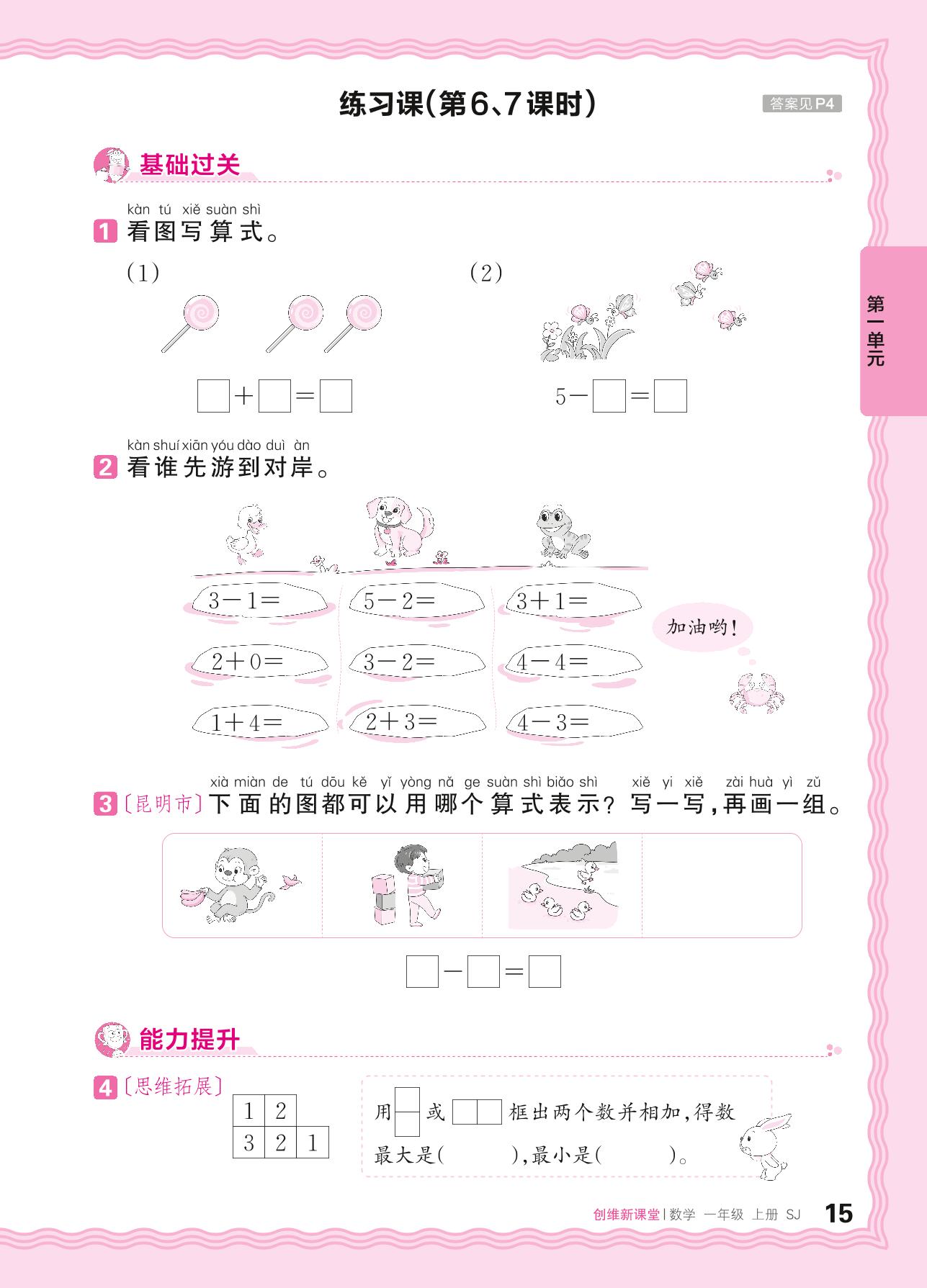 2024秋上册一年级数学苏教版 第一单元 0~5的认识和加减法——加、减法练习课