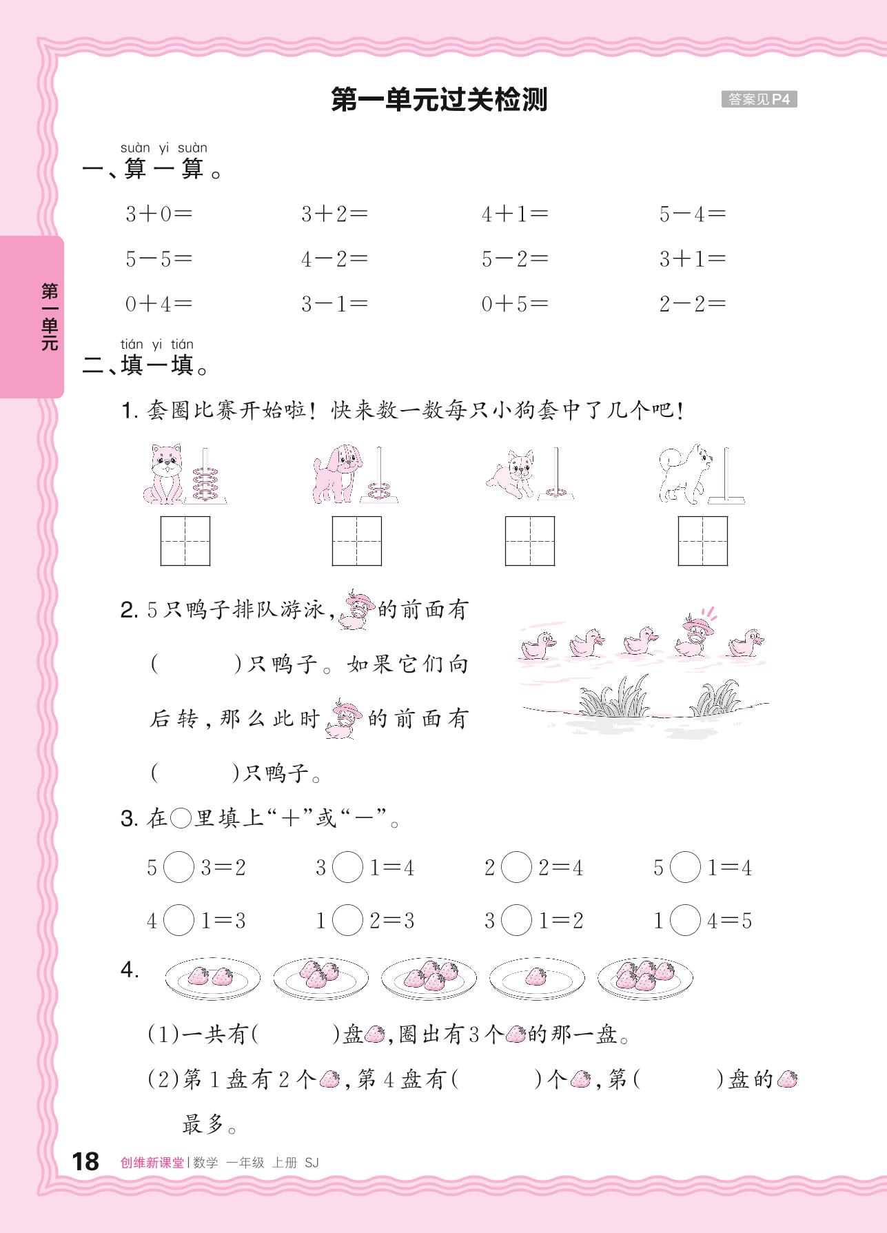 2024秋上册一年级数学苏教版 第一单元过关检测