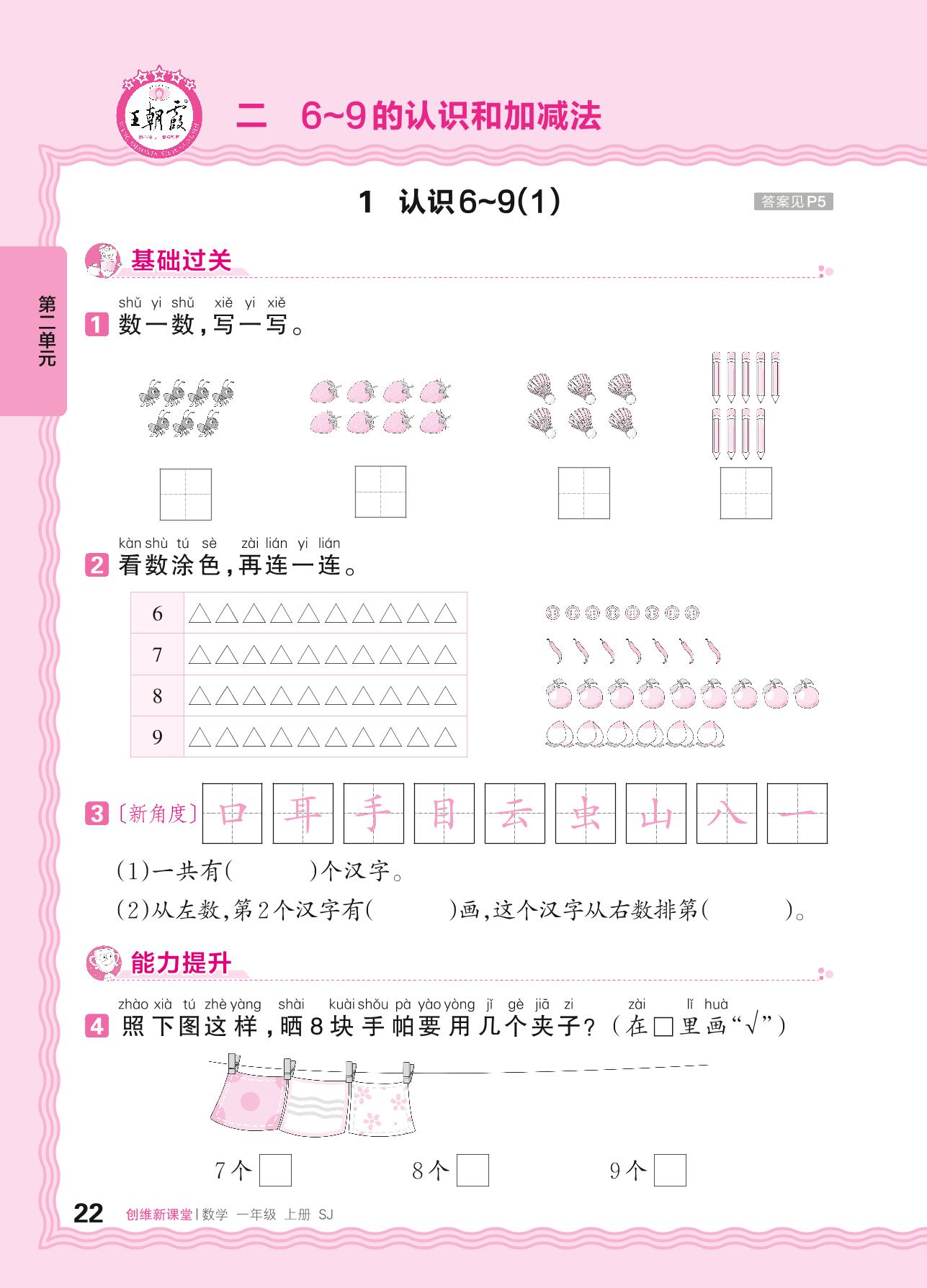 2024秋上册一年级数学苏教版 第二单元 6~9的认识和加减法——1. 认识6~9(1)