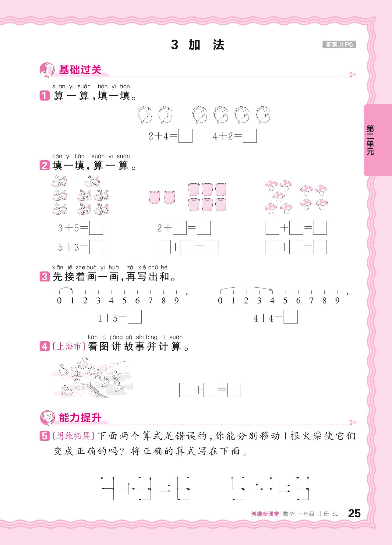 2024秋上册一年级数学苏教版 第二单元 6~9的认识和加减法——3. 加法