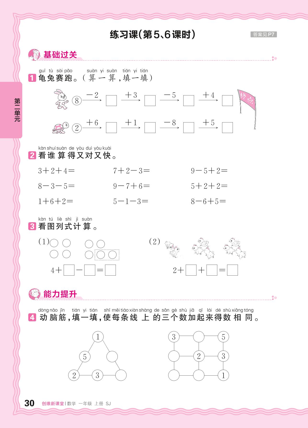 2024秋上册一年级数学苏教版 第二单元 6~9的认识和加减法——连加、连减、加减混合练习课