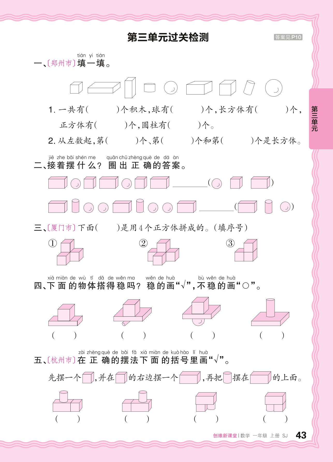 2024秋上册一年级数学苏教版 第三单元过关检测