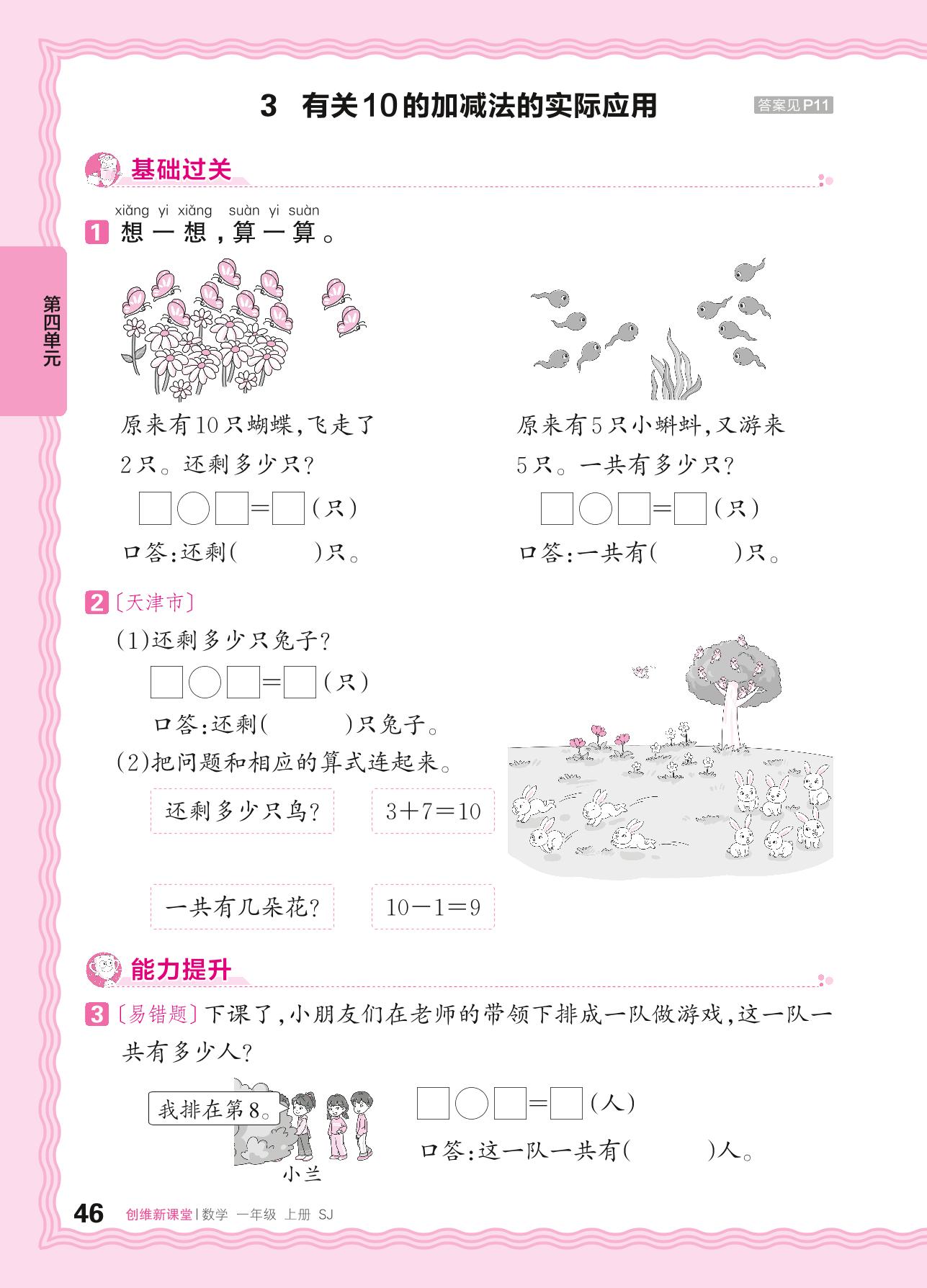 2024秋上册一年级数学苏教版 第四单元 10的认识和加减法——3. 有关10的加减法的实际应用