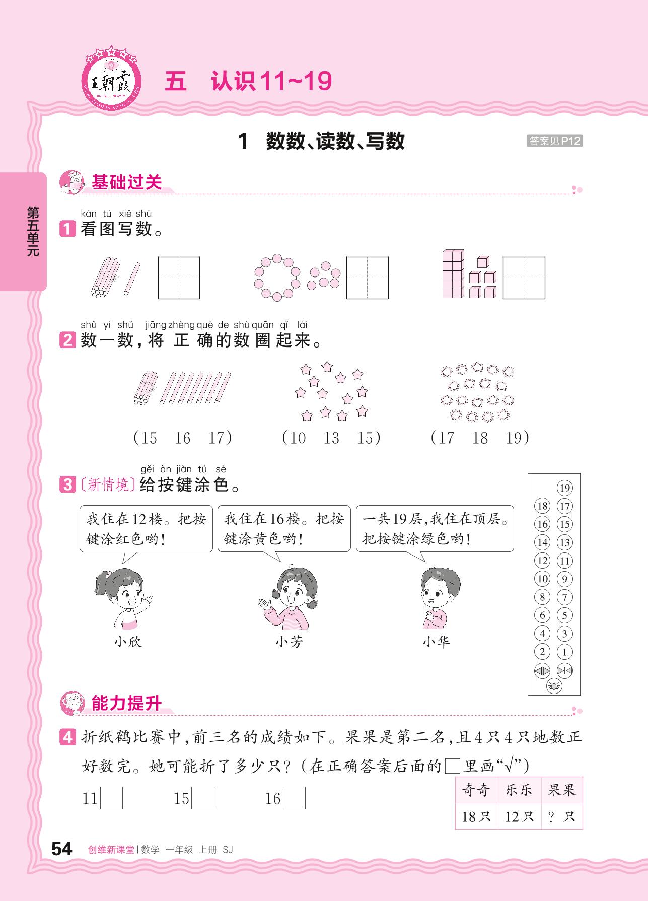 2024秋上册一年级数学苏教版 第五单元 认识11~19——1. 数数、读数、写数