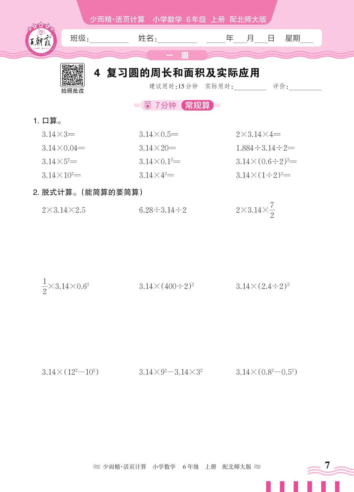 2024秋上册六年级数学北师版 第一单元 圆——4. 复习圆的周长和面积及实际应用