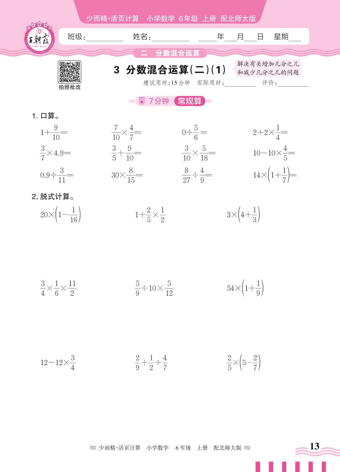 2024秋上册六年级数学北师版 第二单元 分数混合运算——3. 分数混合运算(二)(1)_R240819101006021