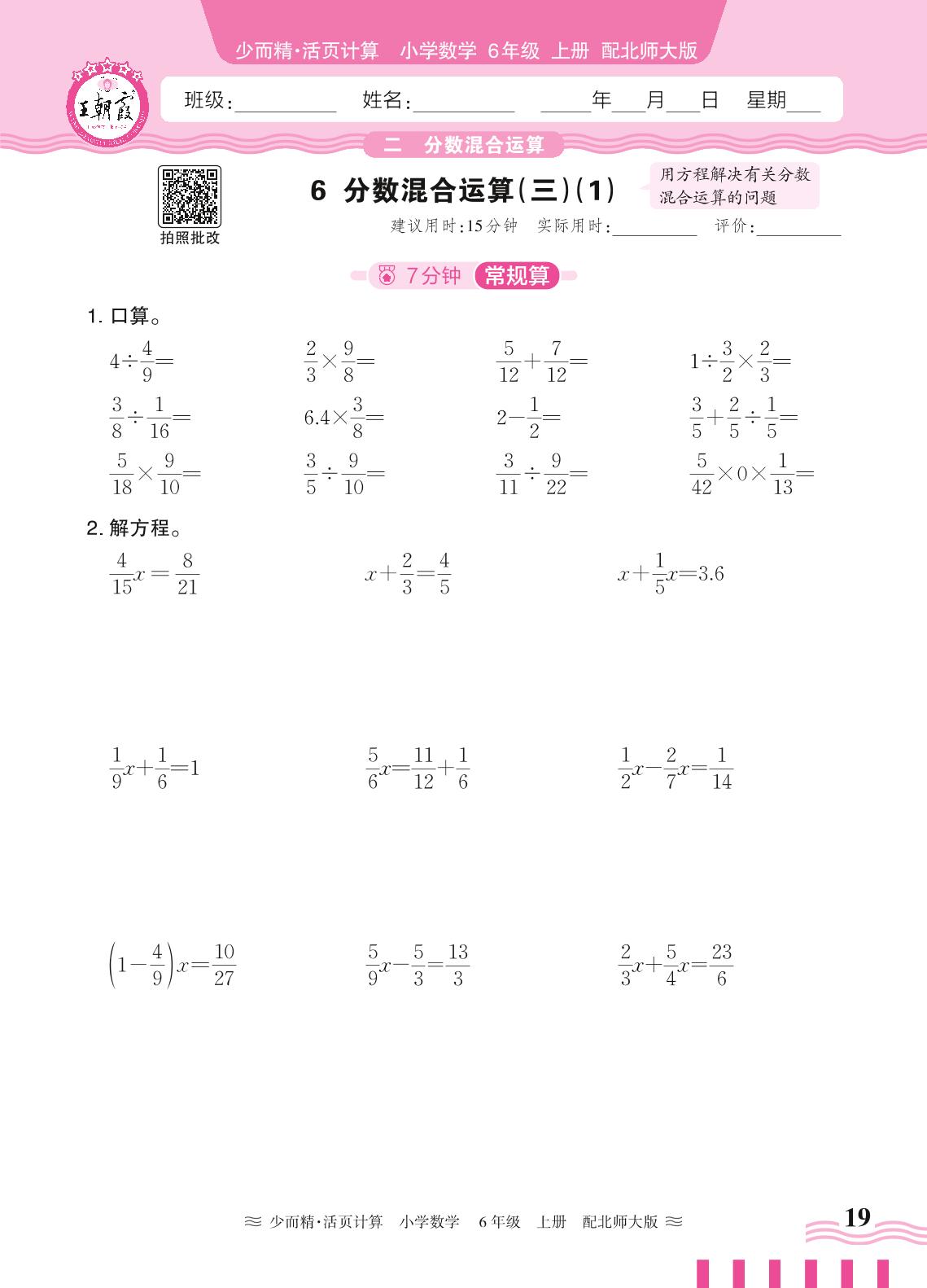 2024秋上册六年级数学北师版 第二单元 分数混合运算——6. 分数混合运算(三)(1)