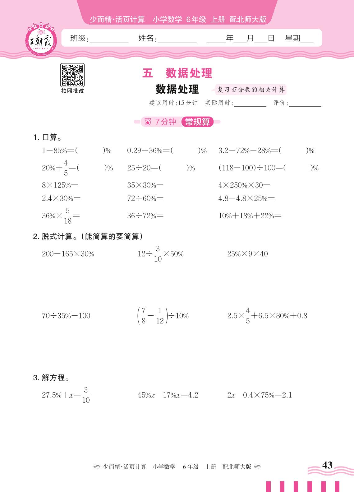2024秋上册六年级数学北师版 第五单元 数据处理——数据处理