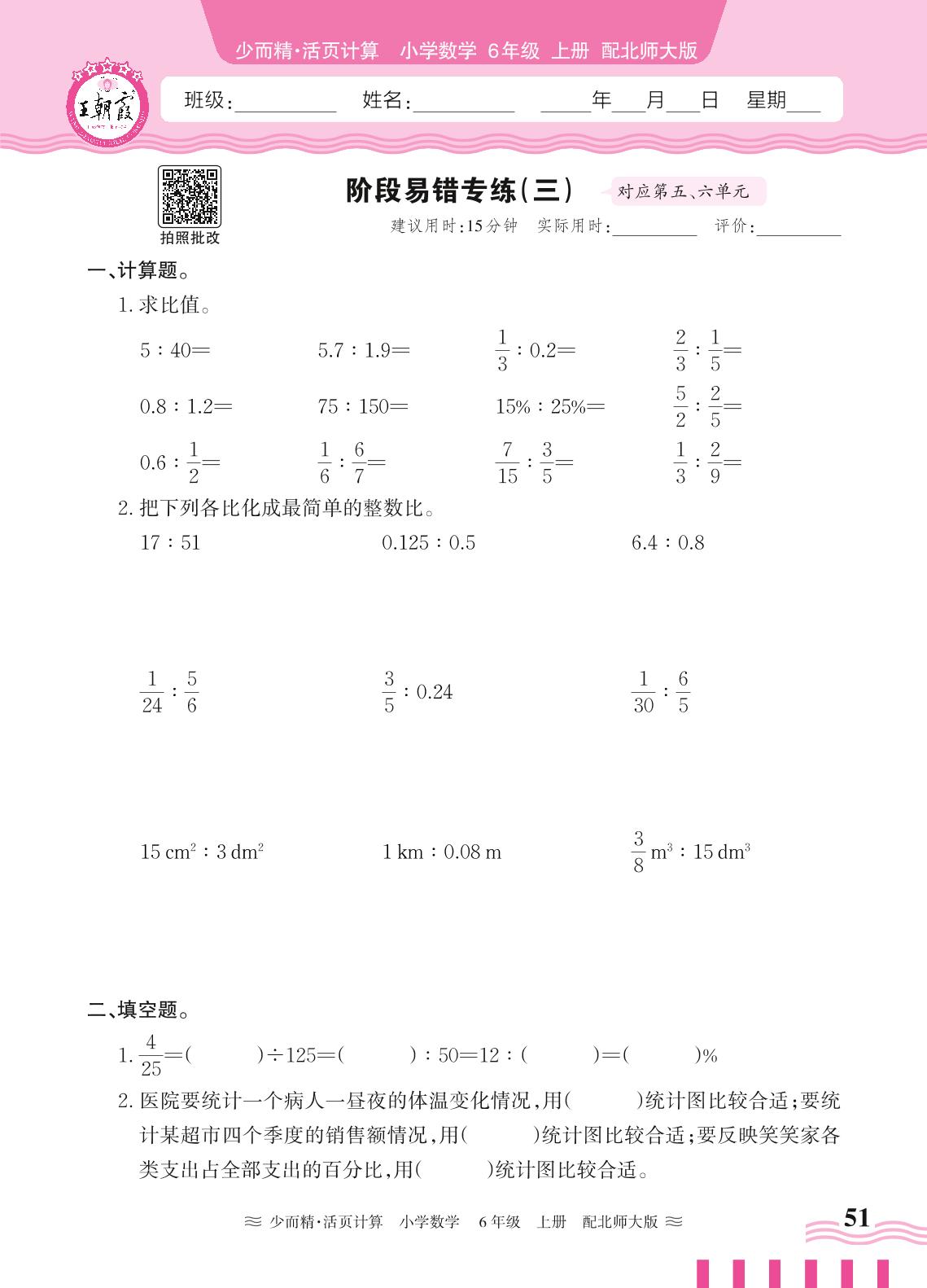 2024秋上册六年级数学北师版 第五、六单元 阶段易错专练