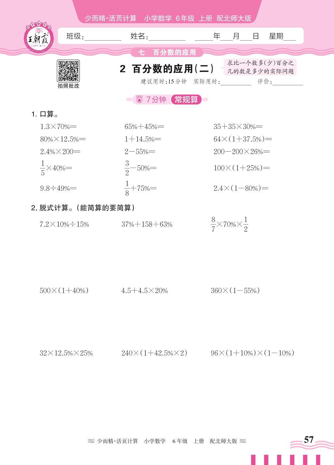2024秋上册六年级数学北师版 第七单元 百分数的应用——2. 百分数的应用(二)