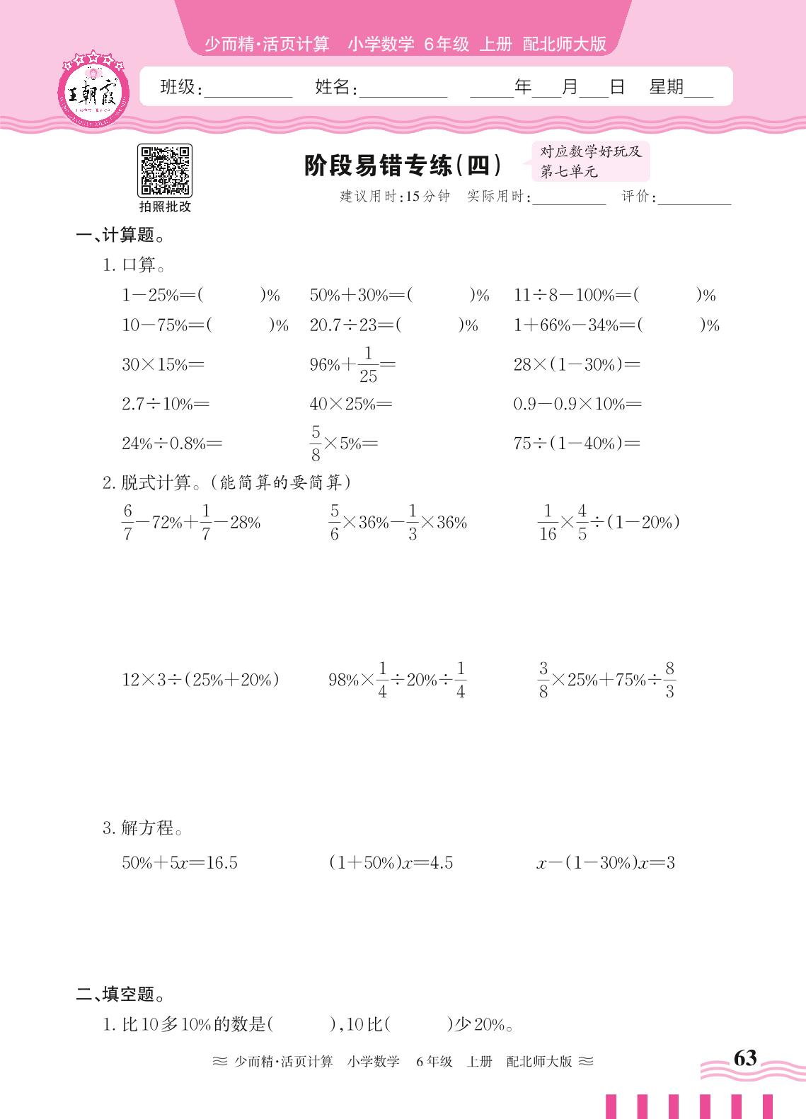 2024秋上册六年级数学北师版 数学好玩及第七单元 阶段易错专练