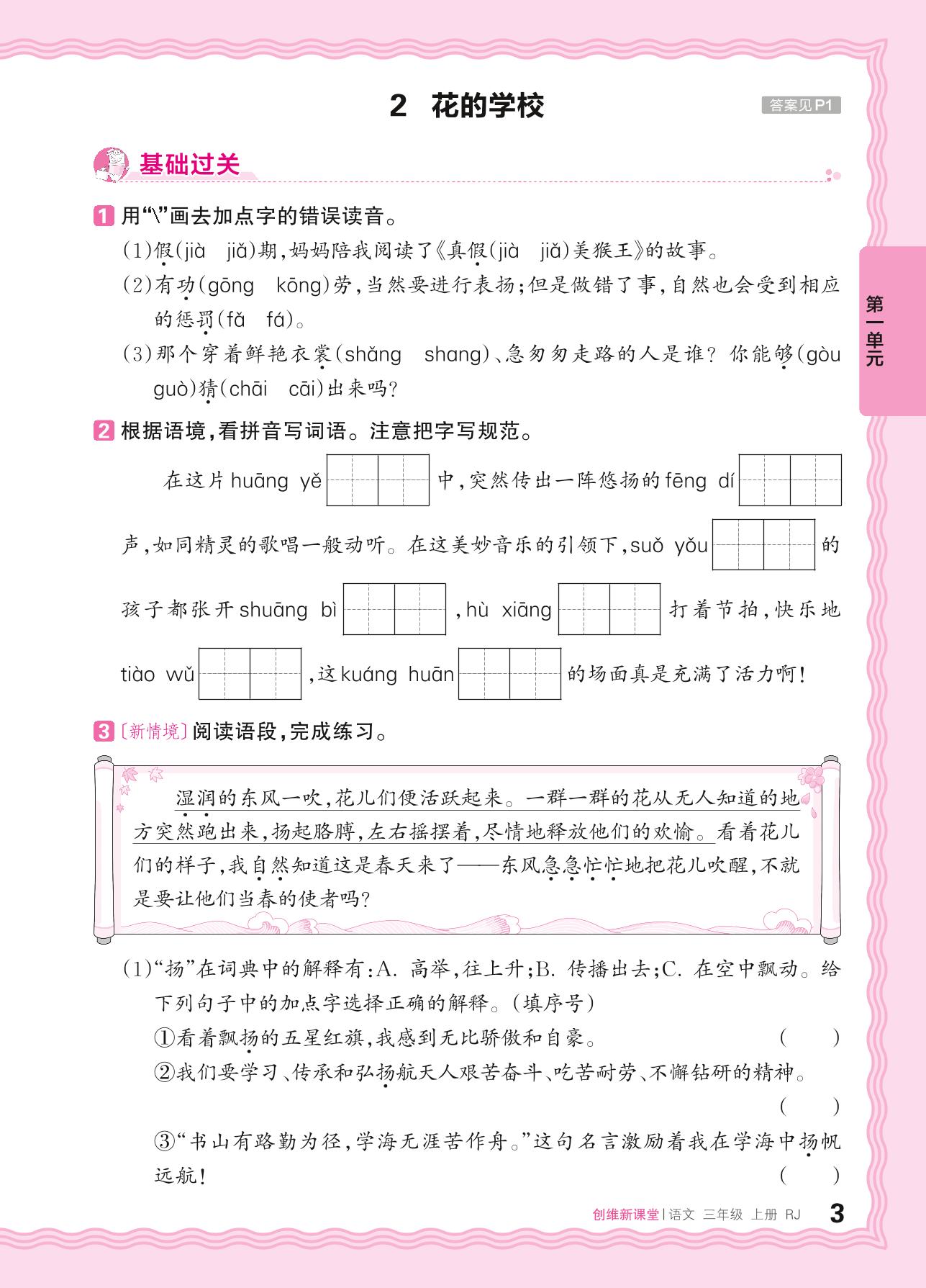 2024秋上册三年级语文人教版 第一单元 学校生活——2. 花的学校