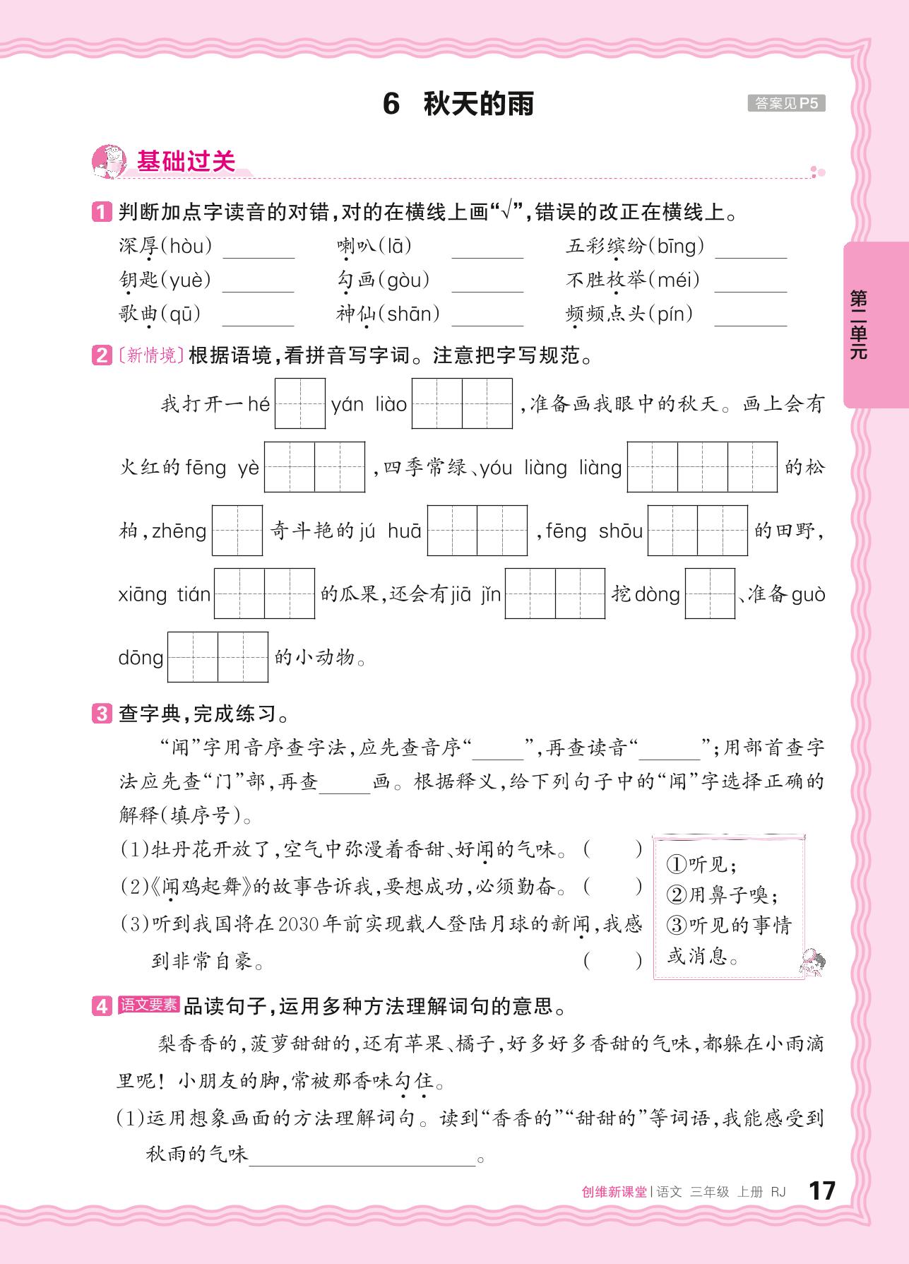2024秋上册三年级语文人教版 第二单元 金秋时节——6. 秋天的雨