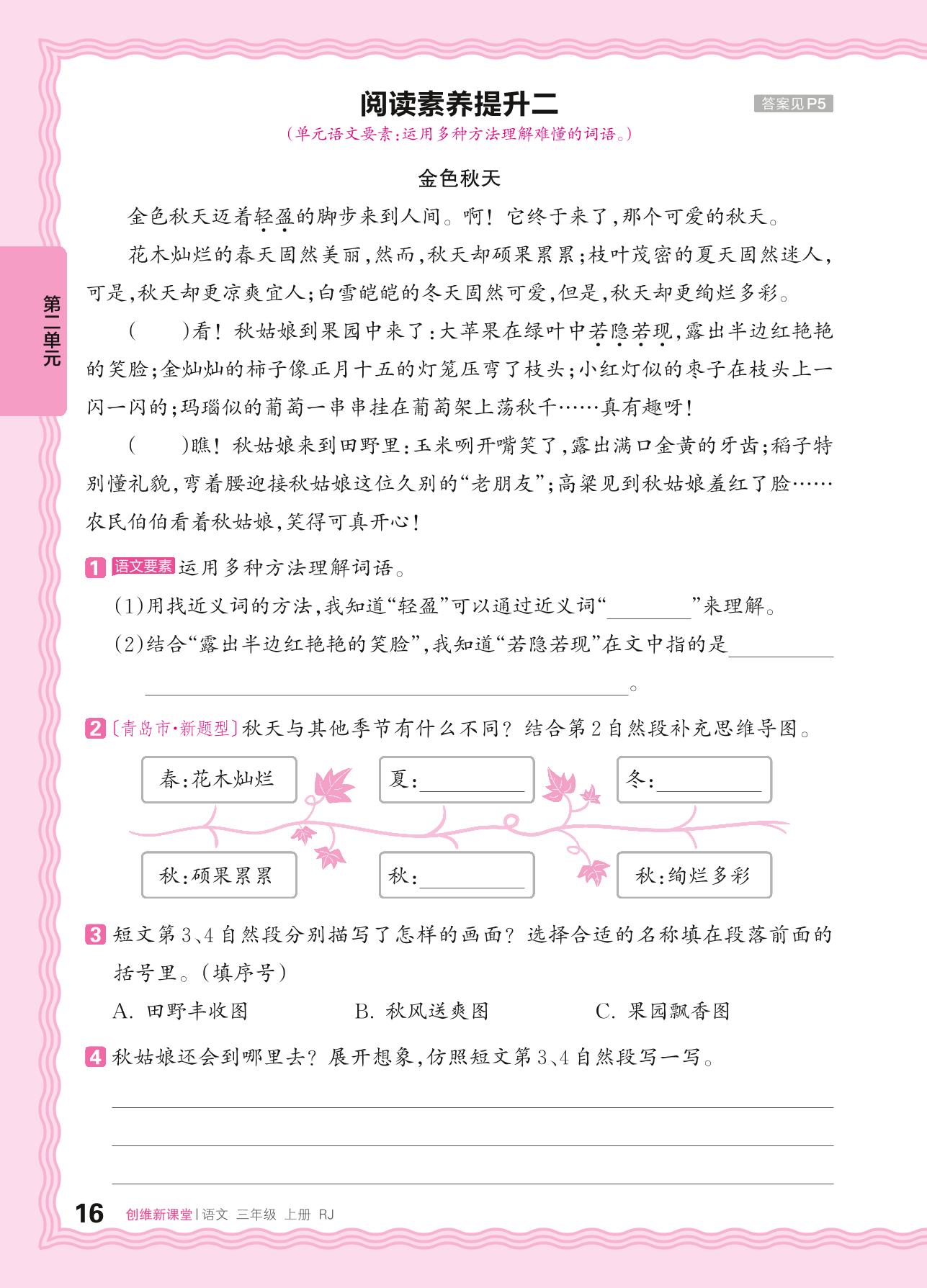 2024秋上册三年级语文人教版 第二单元 金秋时节——阅读素养提升二