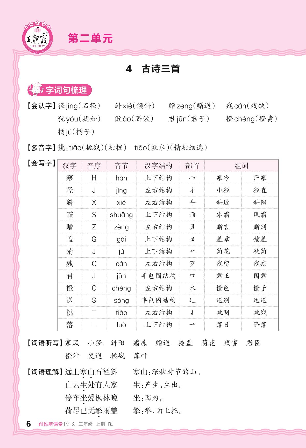 2024秋上册三年级语文人教版 助学手册 第二单元——4. 古诗三首